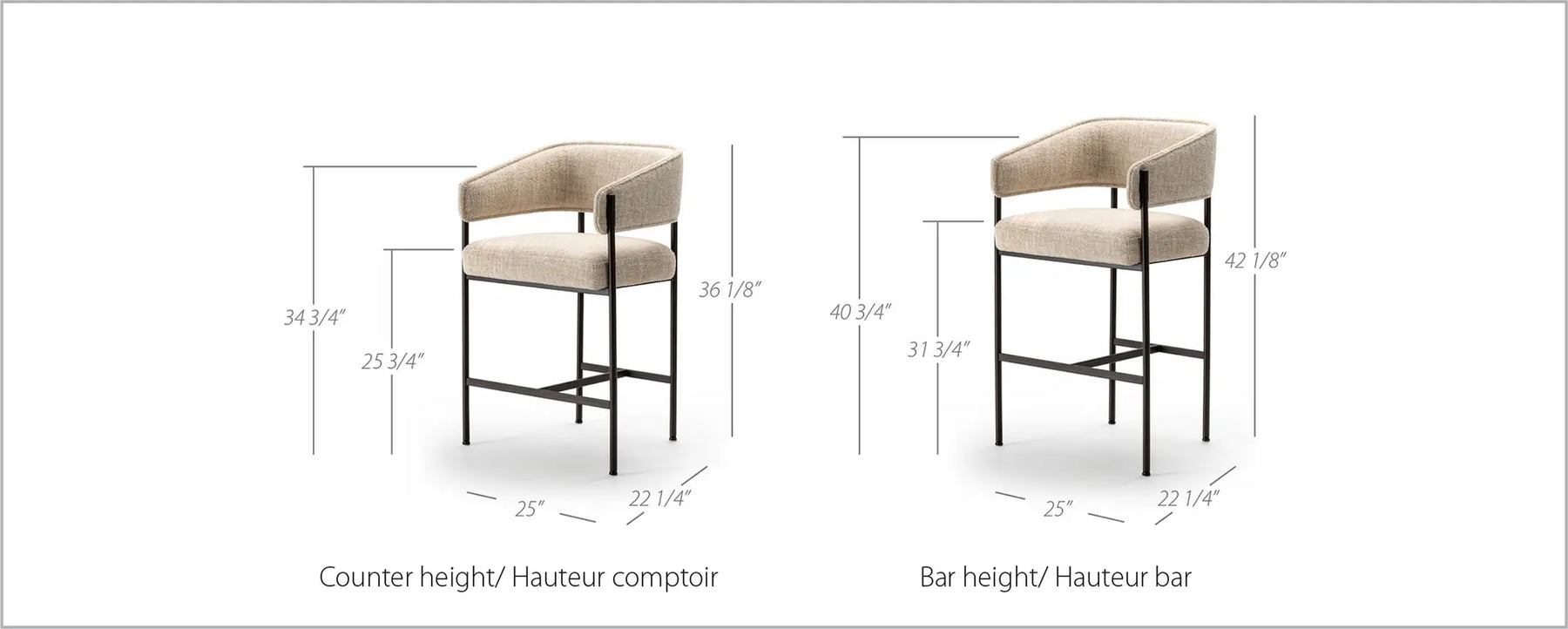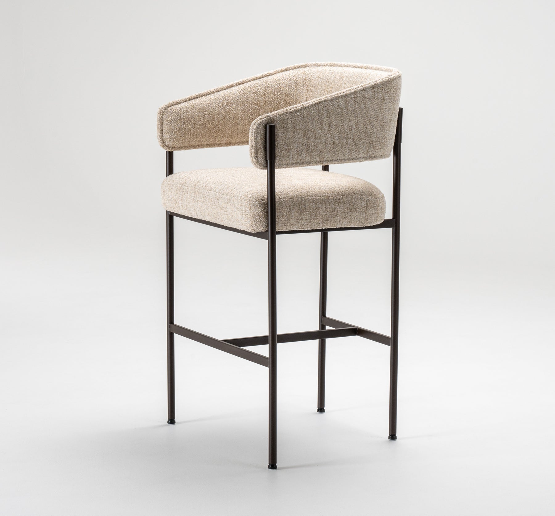 The Alice Barstool by Trica embodies modern and contemporary style, with clean lines and a minimalist structure that fits effortlessly into any space. The stool's armrests are seamlessly integrated into the backrest, offering an enveloping design that adds both elegance and comfort. Built with a fully welded steel frame, the Alice Barstool combines durability with a sleek, sophisticated appearance. Available in both counter and bar heights, the stool is perfect for kitchens, home bars, or dining areas.