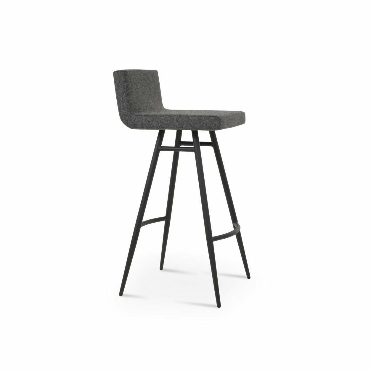 The Dallas Galata Stool is a contemporary stool with a comfortable upholstered seat and backrest on a solid chromed steel max swivel base. Bases are available in bar and counter height with black powder, stainless steel, and walnut veneer finishes. The seat has a steel structure with “S” shape springs for extra flexibility and strength. This steel frame is molded by injecting polyurethane foam. The Soho Concept team designs Dallas Galata Stools, which are suitable for residential use.
