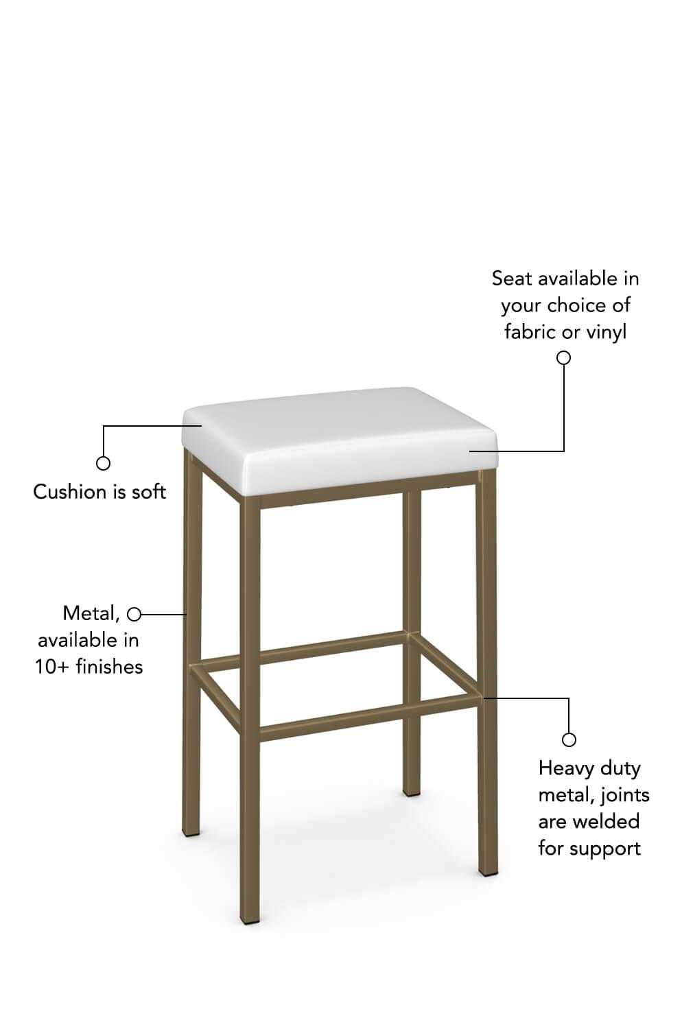 Available in various powder-coated finishes, including brushed steel, this barstool can be customized to match your personal taste and home decor. Choose from Trica's wide selection of fabrics and leathers for the upholstery, ensuring a perfect fit with your existing furniture and style.