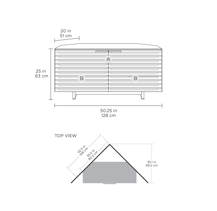 For Speaker Use: 6.75"H x 48.5"W x 8.25"D