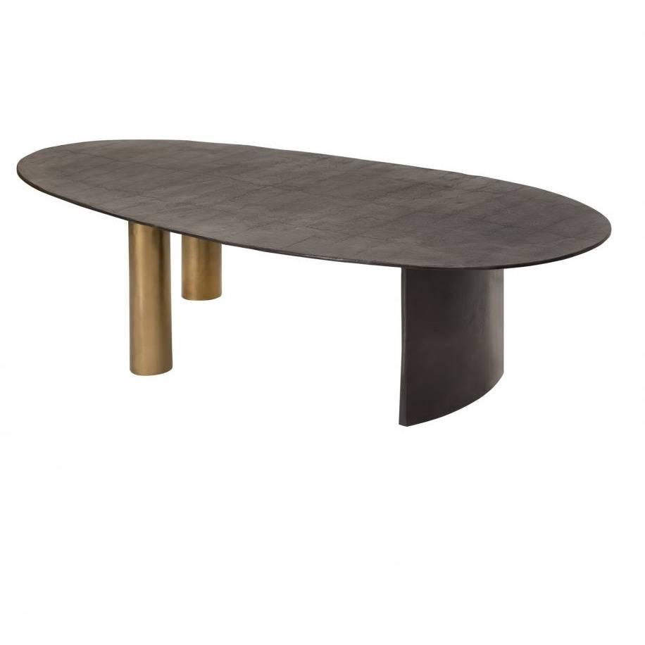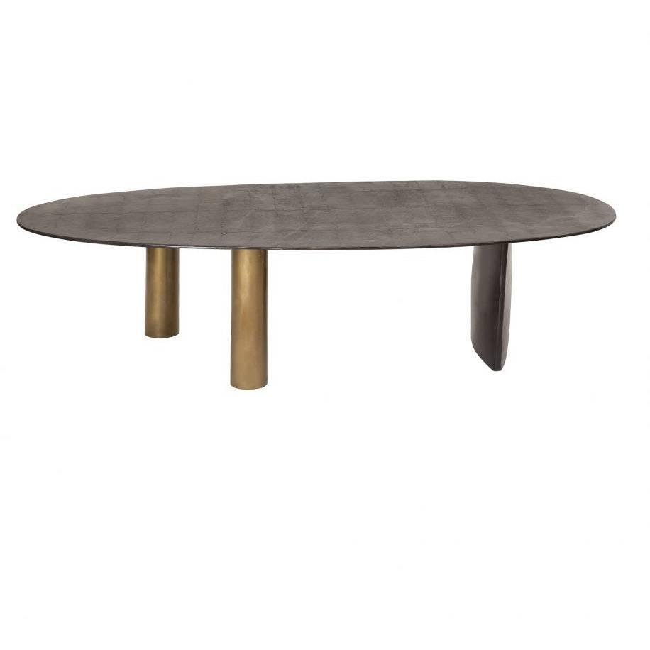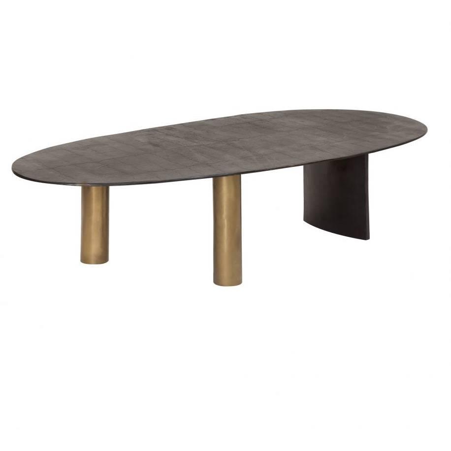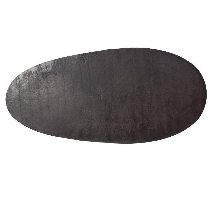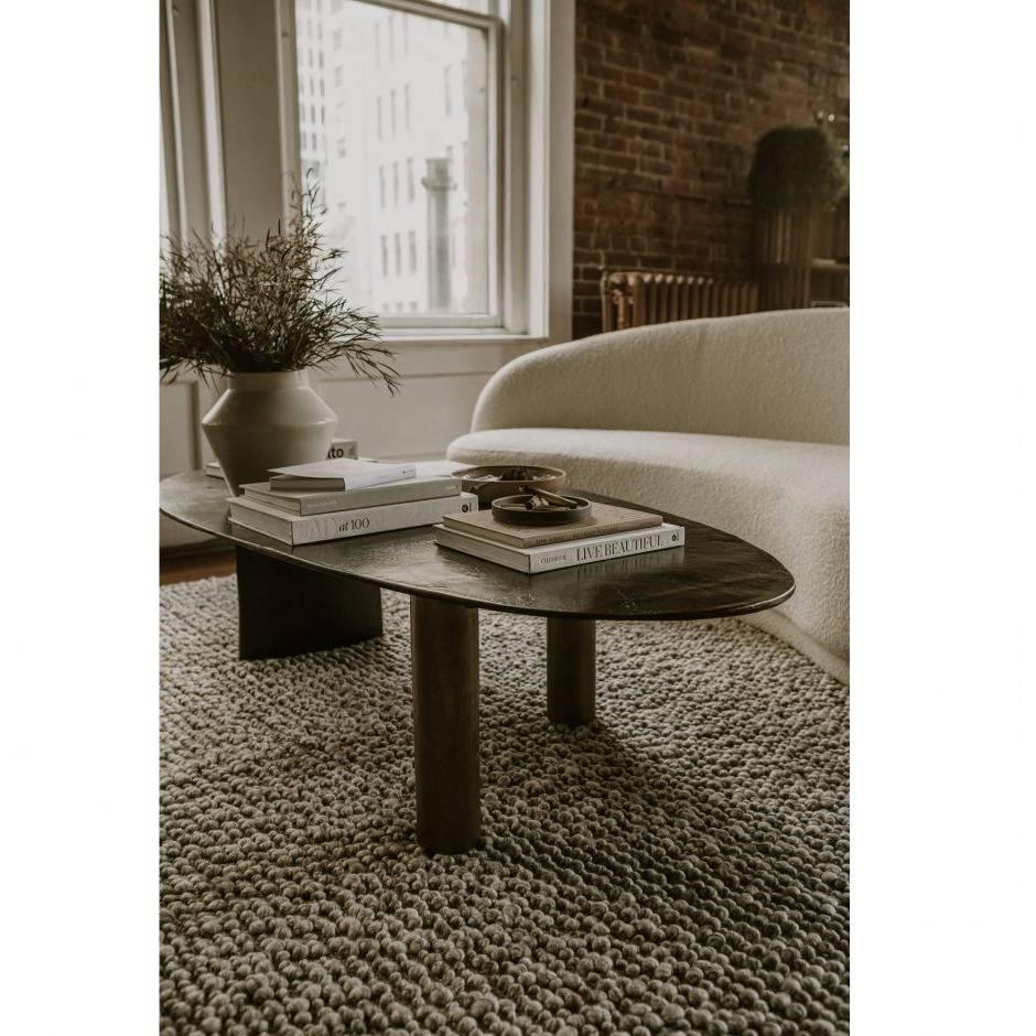 While blending the industrial styling with a more natural, organic shape, the Jocko Coffee Table is a unique addition to your living room. The tabletop's oval shaping, texture, tones, and worn-in lines bring in a natural and aged aesthetic to this metal, industrial-style coffee table.