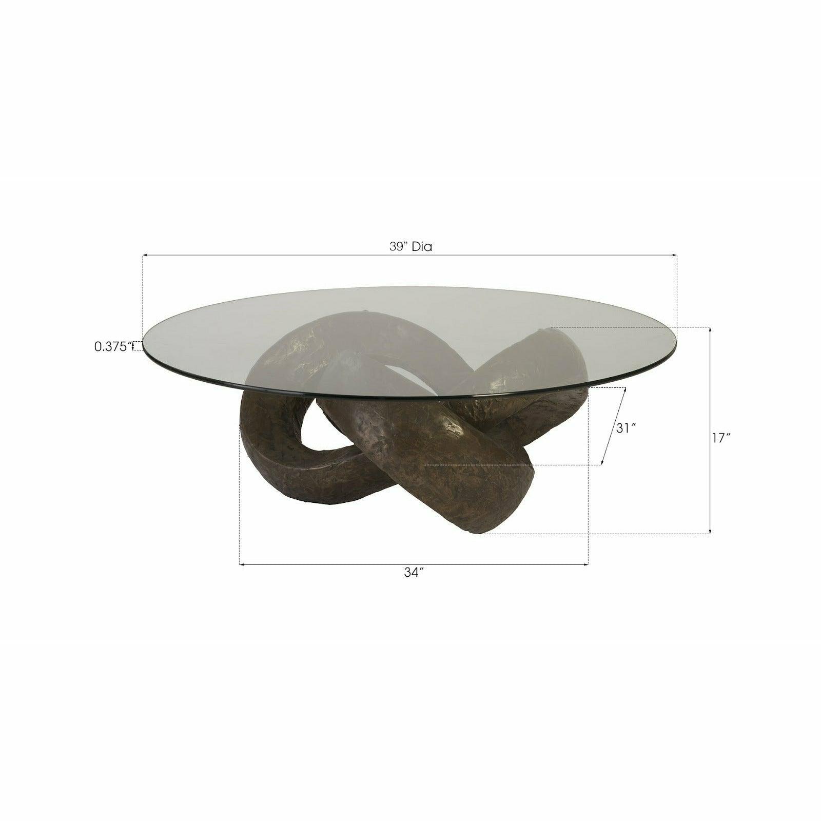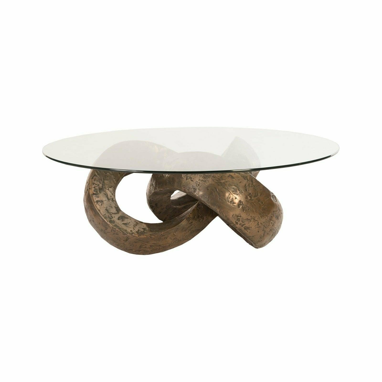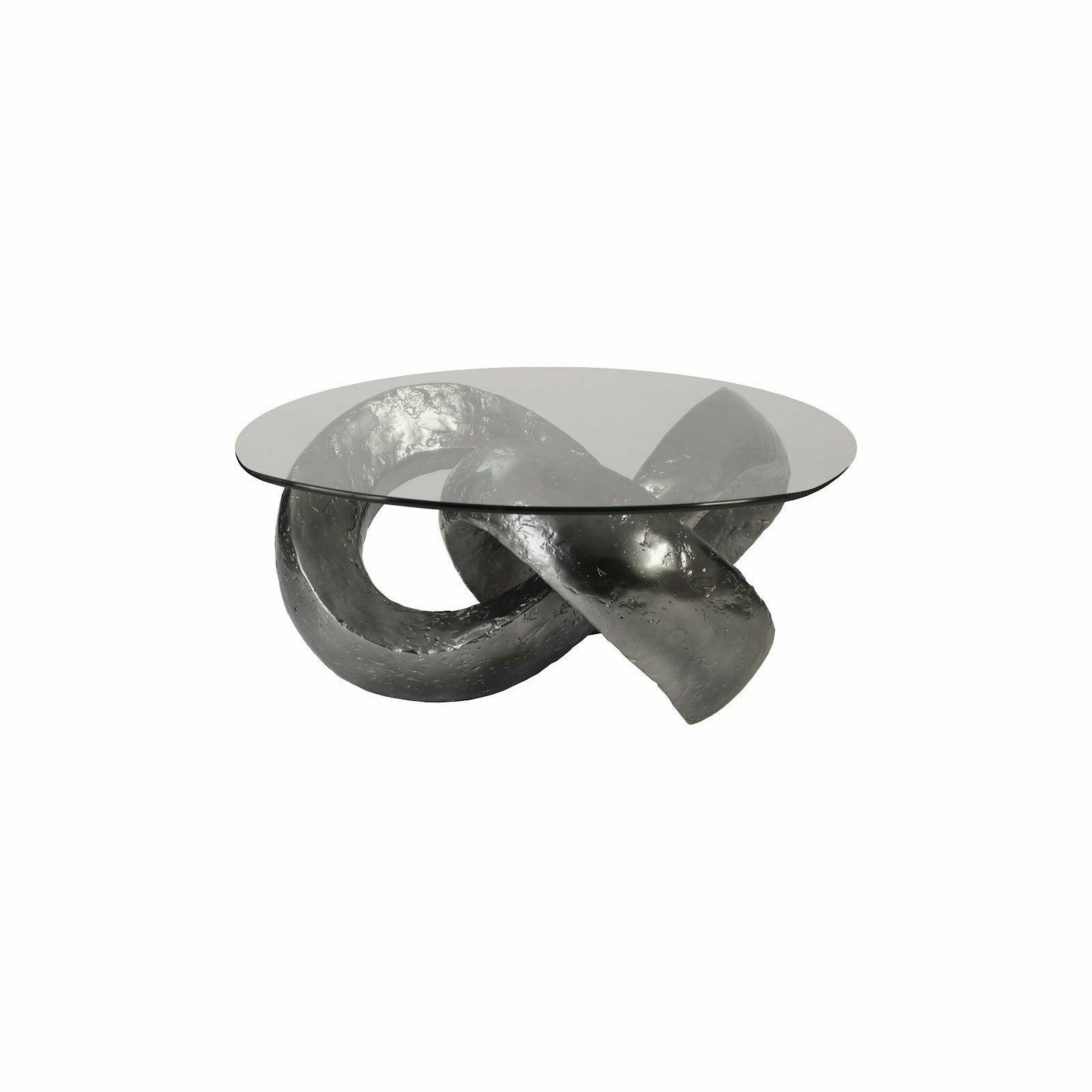 Rather than twist yourself in knots over the perfect coffee table for the contemporary or industrial chic living room, tap the Phillips Collection Trifoil Bronze Coffee Table for the job. Made of composite, the knot coffee table has been finished in bronze to look like metal. Given asymmetrical and organically shaped elements add interest to a space, this table, which comes with a glass top, will be a fascinating introduction. We also offer the Trefoil in a liquid silver finish. Both of these reflect the ethos that the Phillips Collection personifies: modern organic.