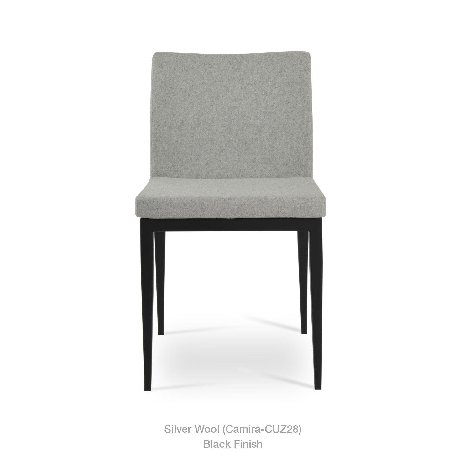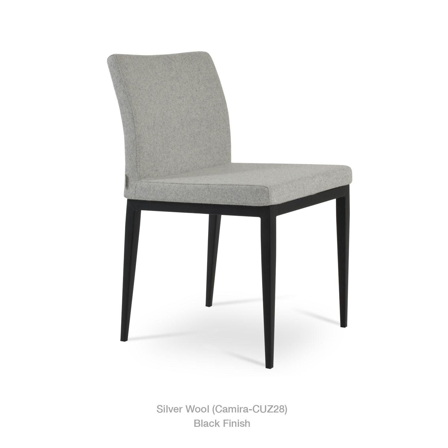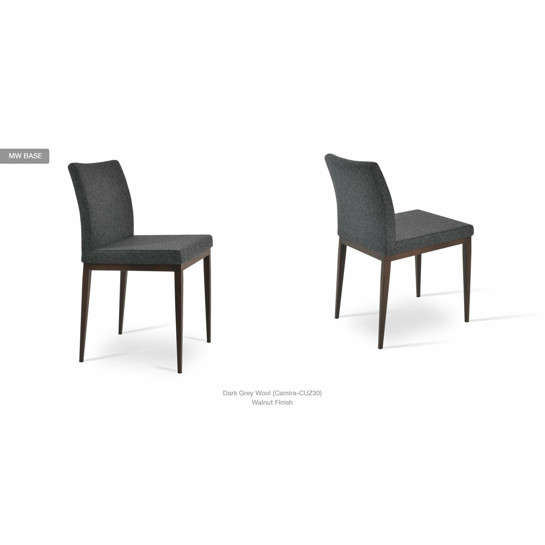 The Aria Wood Grain Metal Cahir is a contemporary dining chair with a comfortable upholstered seat and backrest on veneer steel legs finished in walnut and plastic-tipped. The seat has a steel structure with an “S” shape springs for extra flexibility and strength. This steel frame is molded by injecting polyurethane foam. Aria MW seat is upholstered with a removable velcro enclosed fabric, leatherette, PPM, leather, or wool fabric slipcover. Other colors are available as a special order with a minimum quantity required. The chair is suitable for both residential and commercial use.