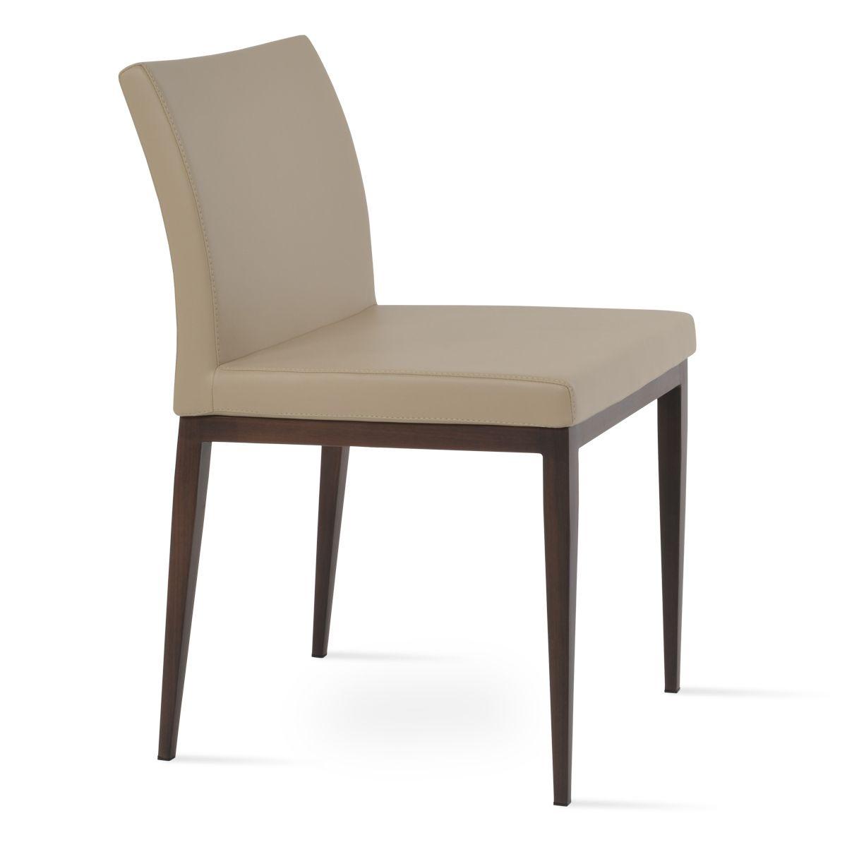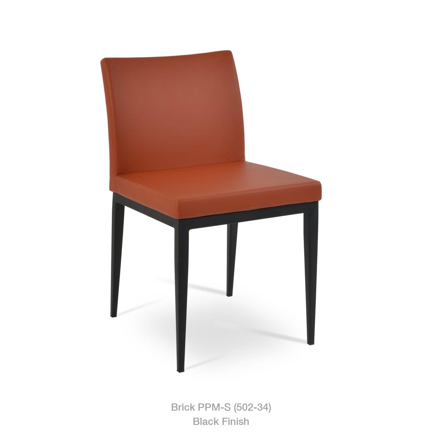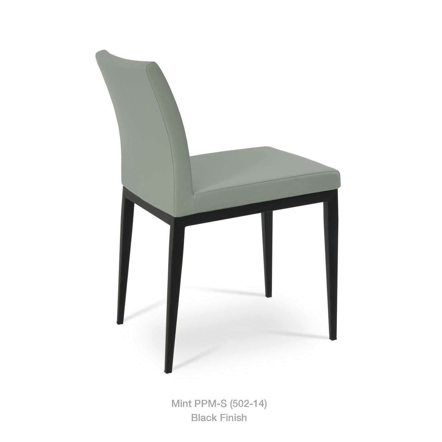 The Aria Wood Grain Metal Cahir is a contemporary dining chair with a comfortable upholstered seat and backrest on veneer steel legs finished in walnut and plastic-tipped. The seat has a steel structure with an “S” shape springs for extra flexibility and strength. This steel frame is molded by injecting polyurethane foam. Aria MW seat is upholstered with a removable velcro enclosed fabric, leatherette, PPM, leather, or wool fabric slipcover. Other colors are available as a special order with a minimum quantity required. The chair is suitable for both residential and commercial use.
