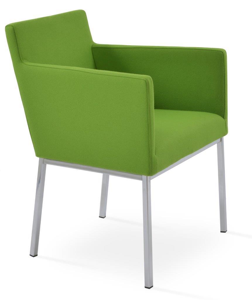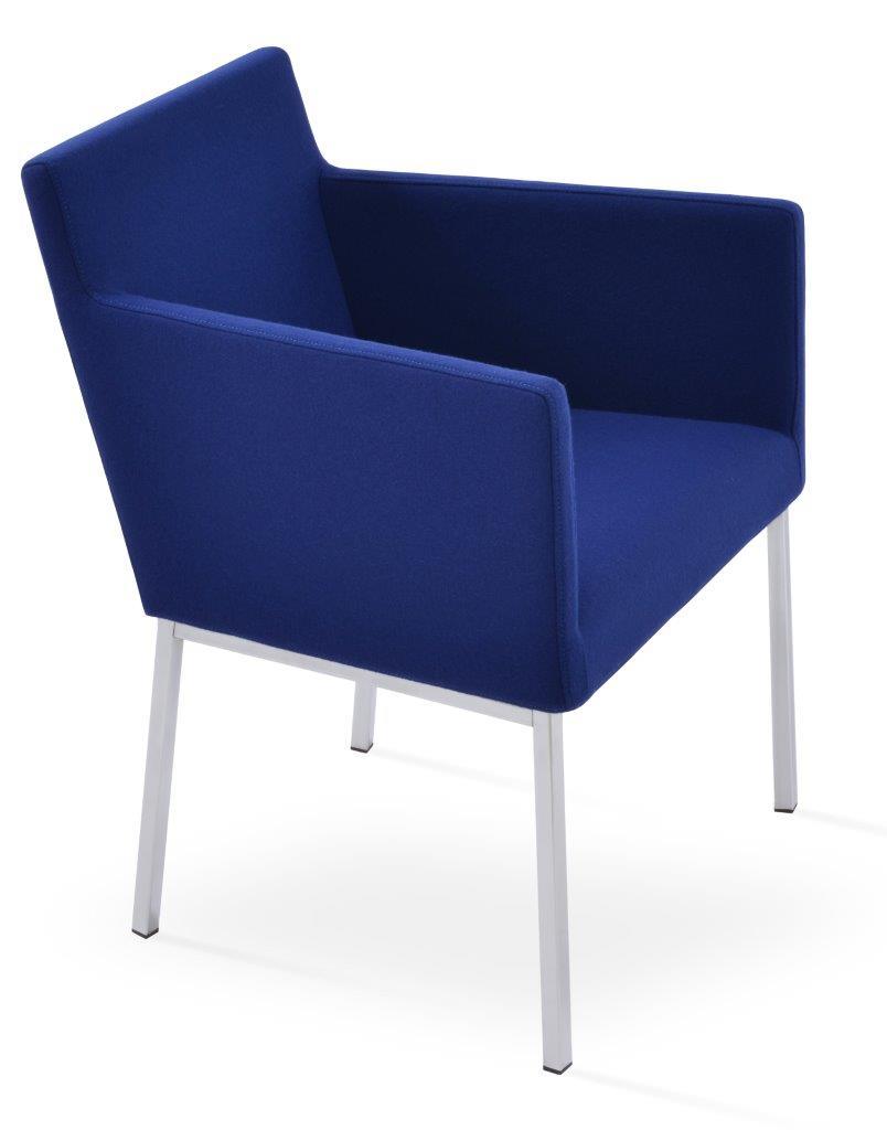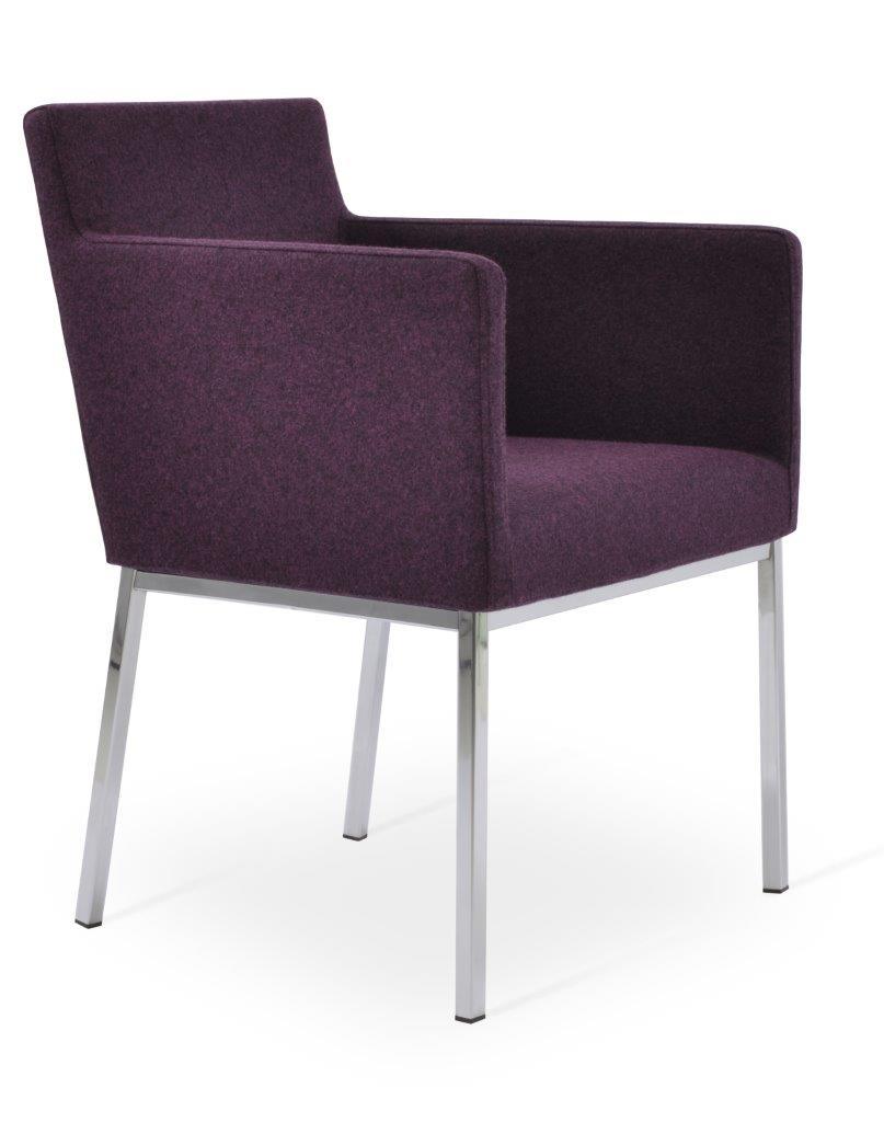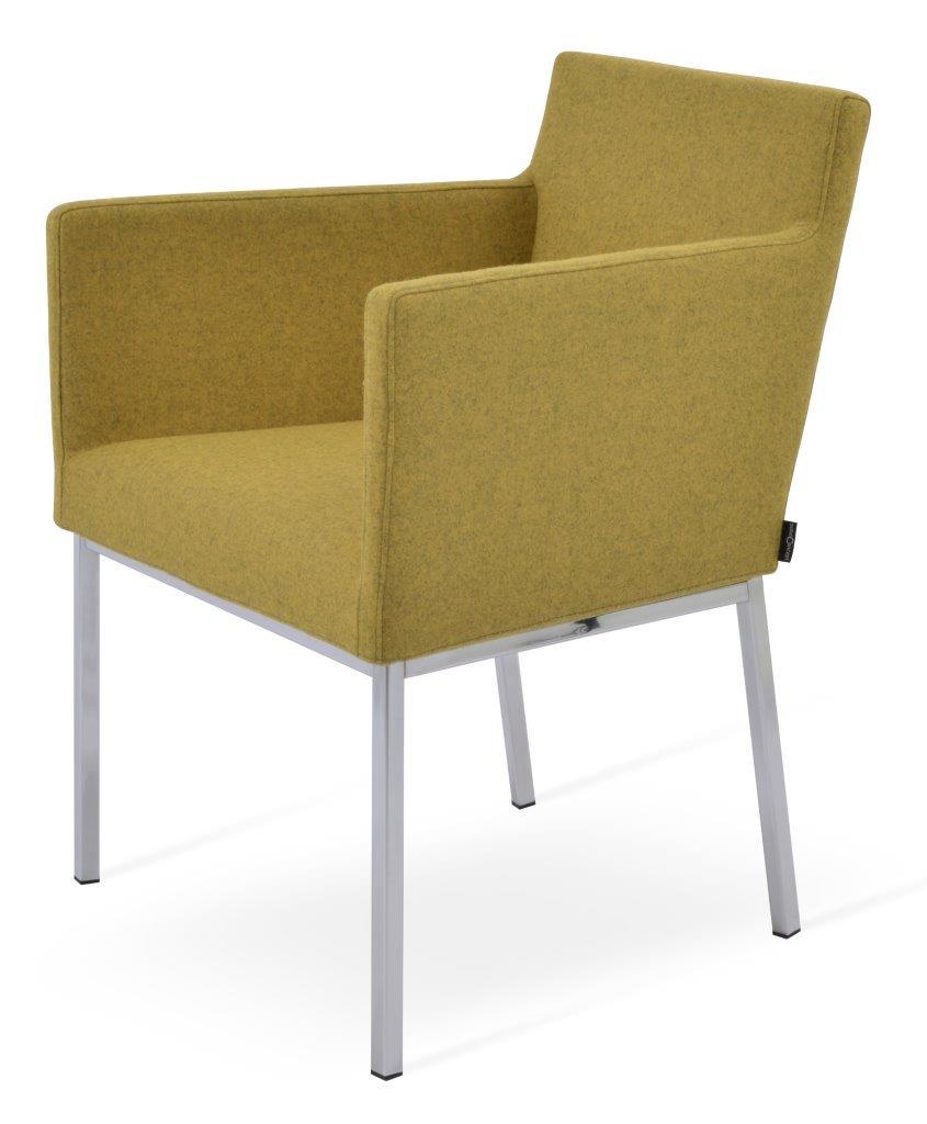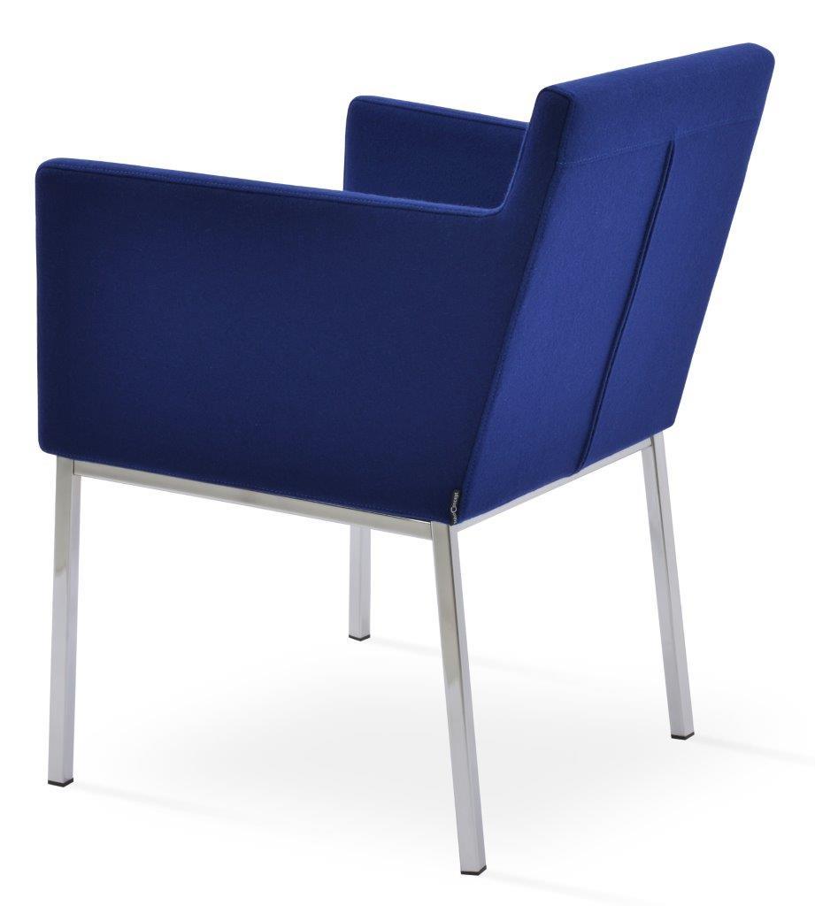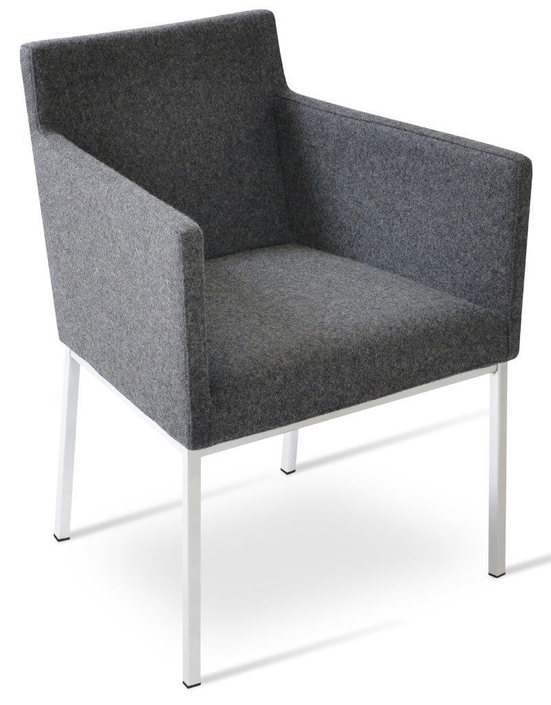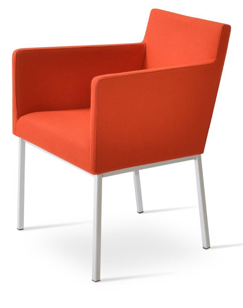 Harput Metal Chair is an armchair with a comfortable upholstered seat and backrest on solid walnut legs tipped with screwed plastic caps. The seat has a steel structure with “S” shape springs for extra flexibility and strength. This steel frame is molded by injecting polyurethane foam. The Harput seat is upholstered with a removable velcro-enclosed leather, PPM, or wool fabric slip cover. Camira Fabrics are five years guaranteed from the date of invoice against wear through (the complete deterioration of the fabric's structure in a particular area) and loss of colorfastness (the excessive loss of color due to exposure to light). The chair is suitable for both residential and commercial use. Harput Metal Chair is designed by Tayfur Ozkaynak.