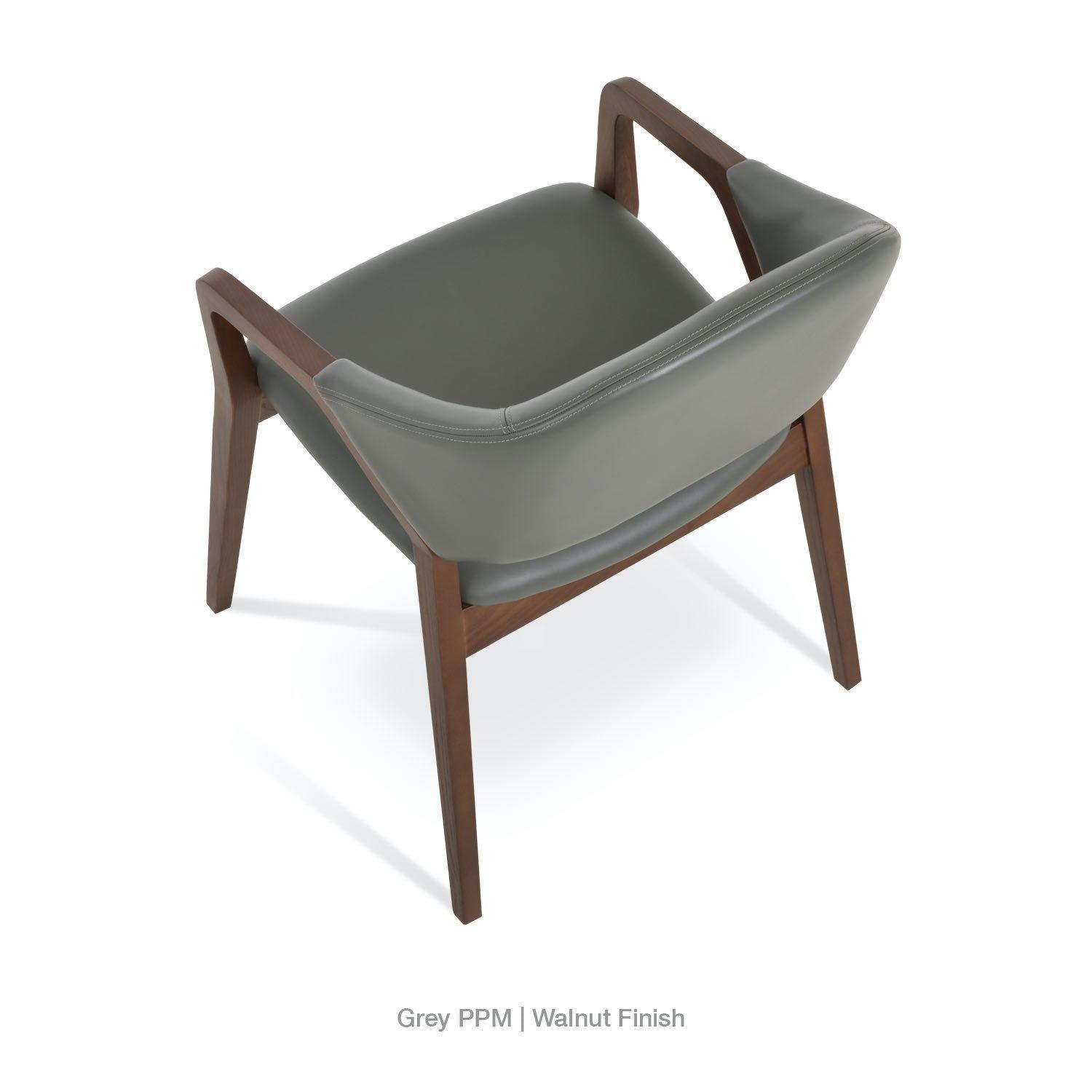 The Luna Armchair is a contemporary chair with an upholstered back and seat. The legs are finished in wood. The Industrial Modern team designs Luna Armchair and it's suitable for both residential and commercial use.