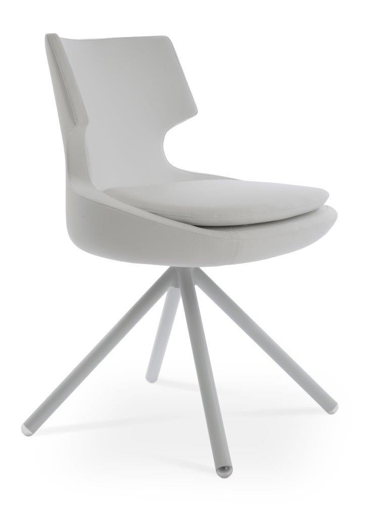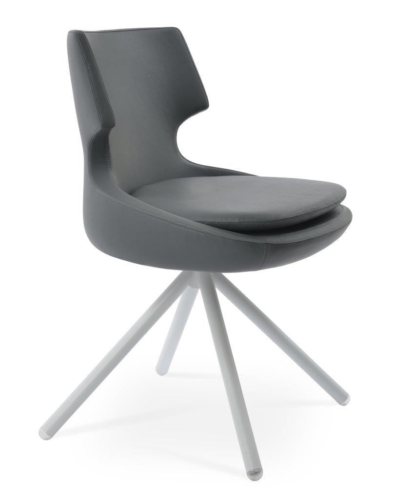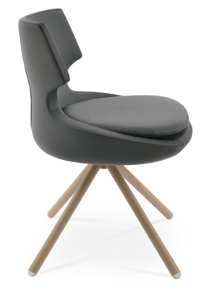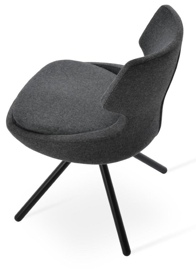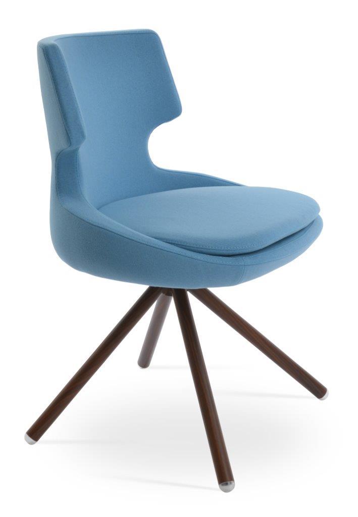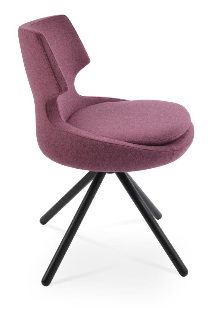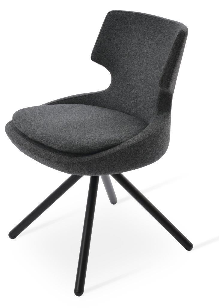 Patara Stick is a unique dining chair with a comfortable upholstered seat and backrest on a black/walnut-coated steel base. Each leg is tipped with a plastic glide screwed into the foot. The seat has a steel structure with “S” shape springs for extra flexibility and strength. This steel frame is molded by injecting polyurethane foam. The Patara seat is upholstered with a removable zipper-enclosed leather, PPM, leatherette, or wool fabric slip cover. This contemporary chair is suitable for both residential and commercial use.