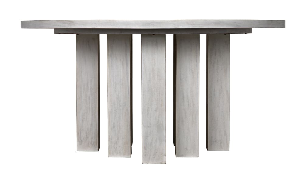 ⭐⭐⭐⭐⭐ "The Resistance Dining Table is a work of art. The White Wash finish adds elegance while the bold legs make it a true statement piece." - Rachel K.