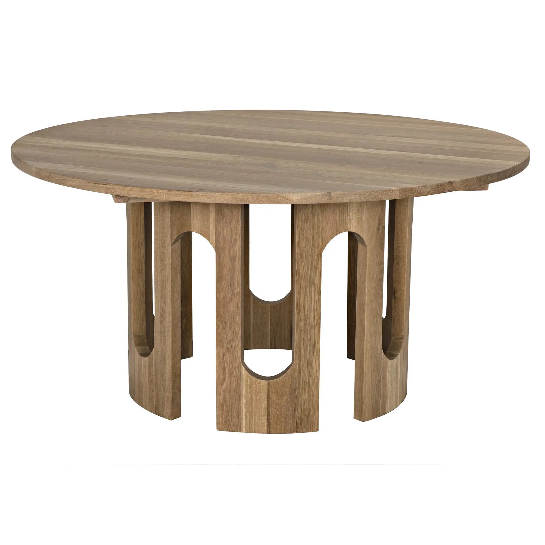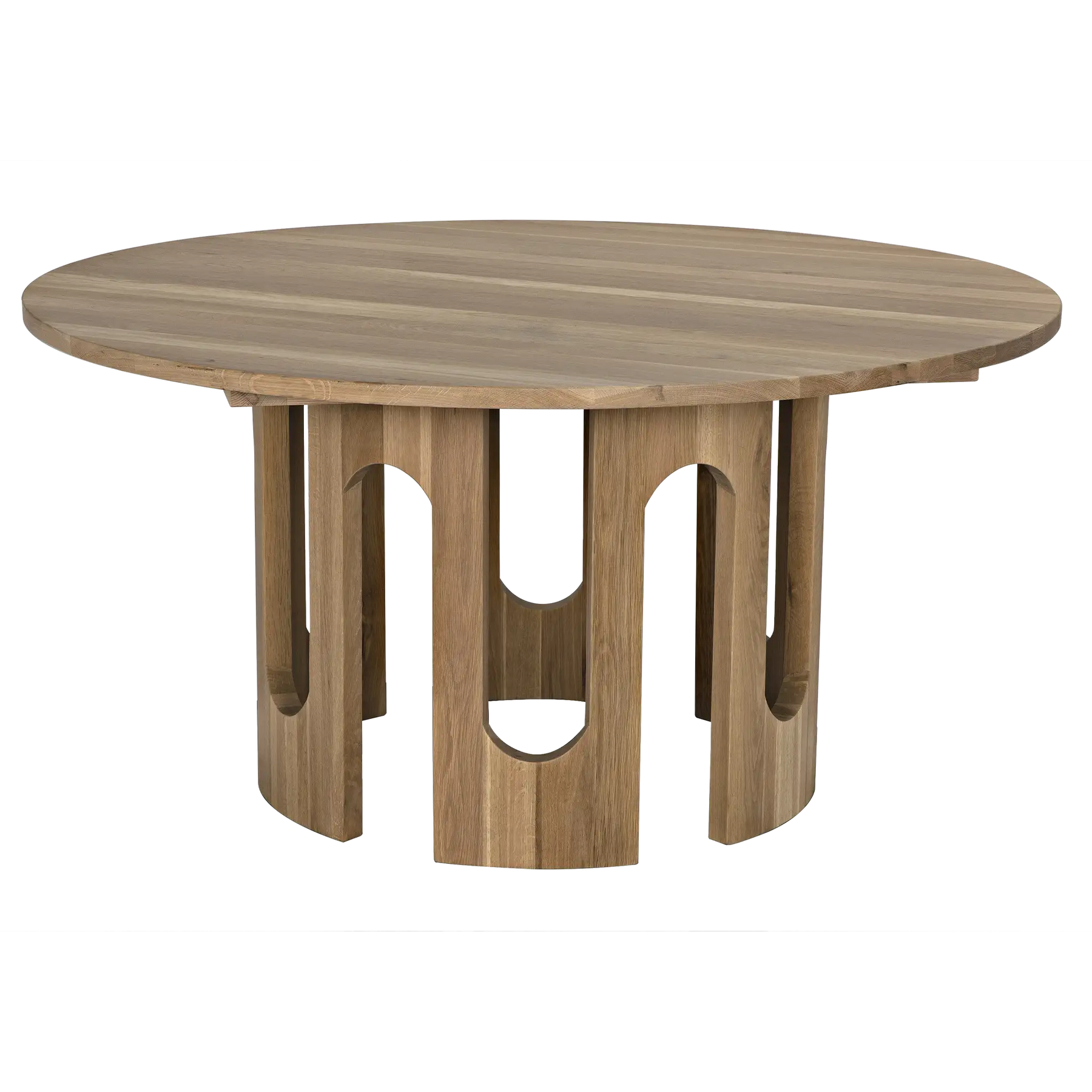 The Kirill Table in White Oak is a striking statement piece that marries bold design with timeless elegance. Crafted from pieced White Oak, this round dining table features a unique, supergraphic-style circular base that twists and curves, adding an architectural flair to any dining space. Finished with a clear, flat coat, the Kirill Table showcases the natural beauty of the White Oak wood while offering versatility and durability. Perfect for those who appreciate modern aesthetics with a touch of artistry, this table comfortably seats up to six, making it ideal for both intimate and larger gatherings.