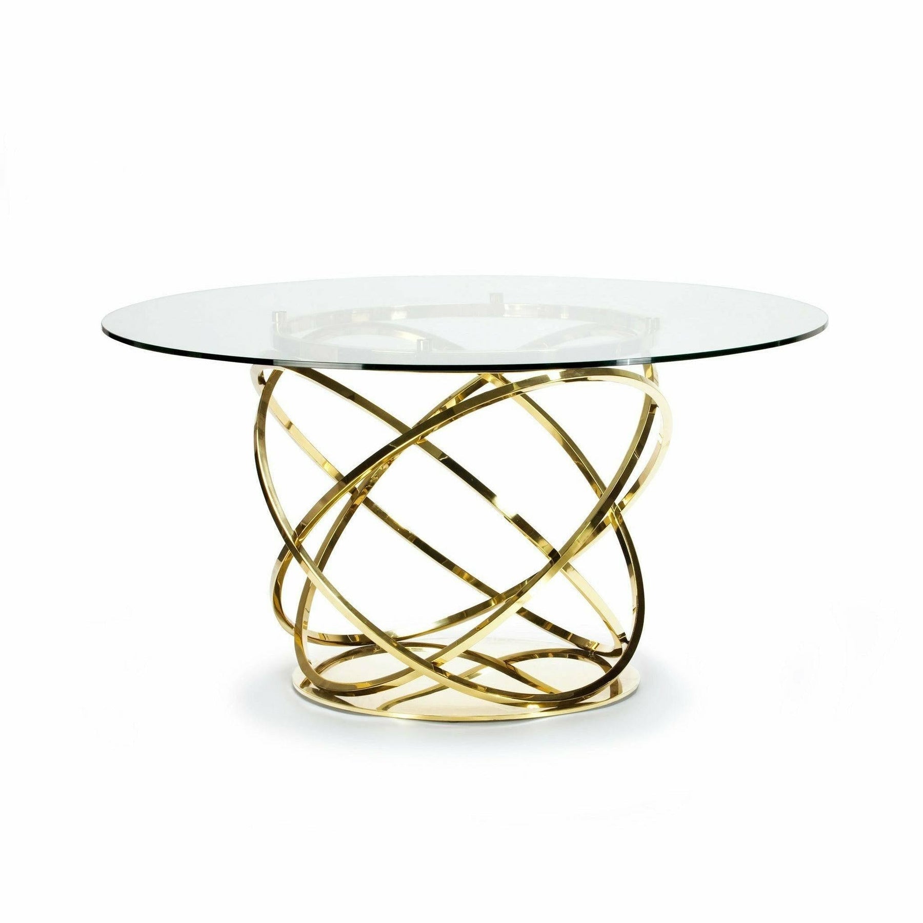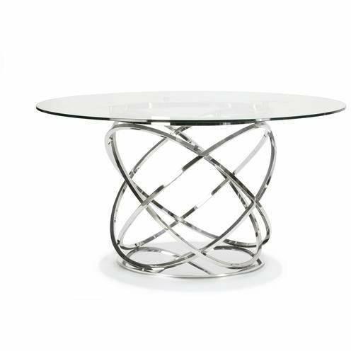 ORBIT ROUND DINING TABLE Clear Glass Top with Polished Stainless Steel Base