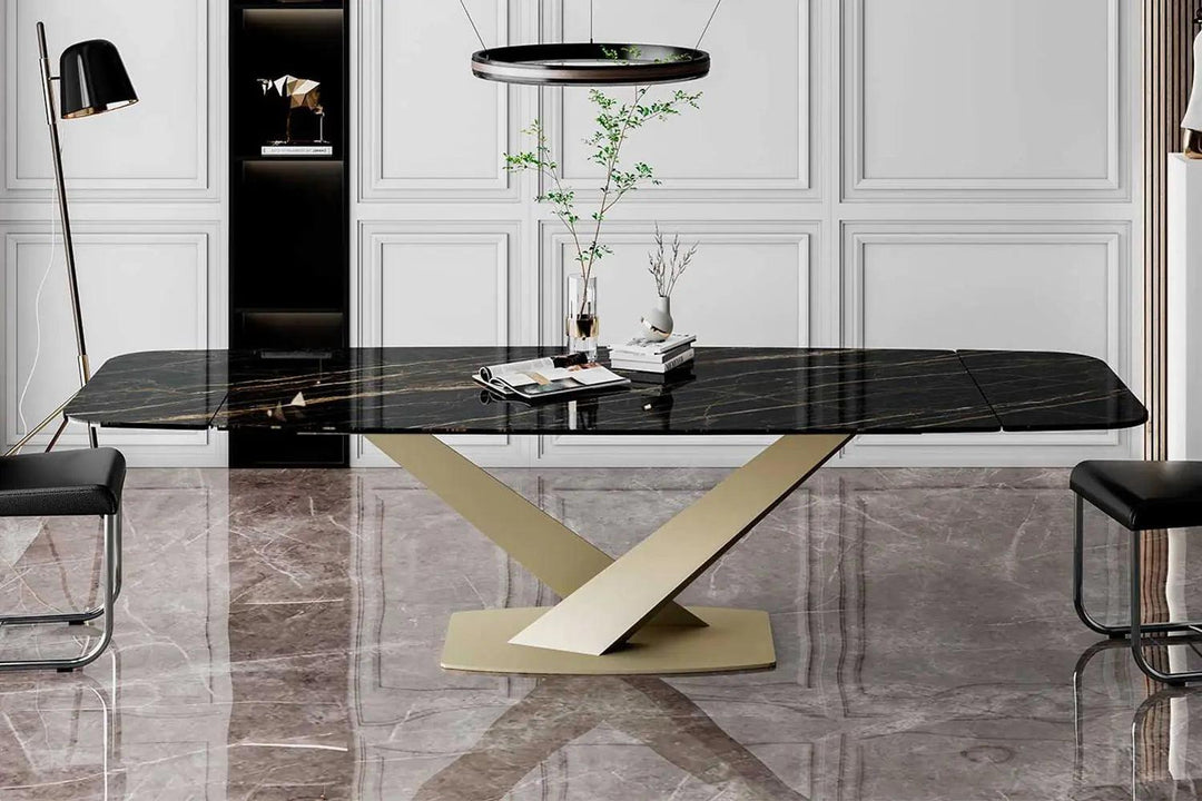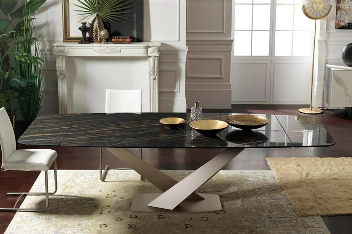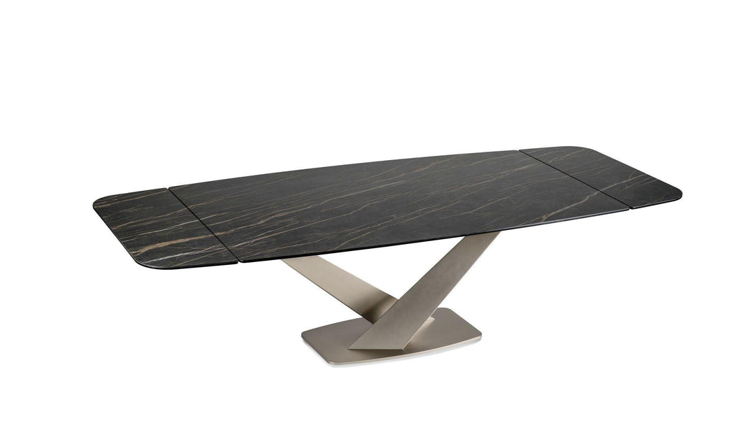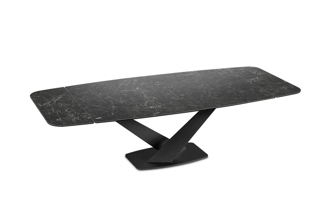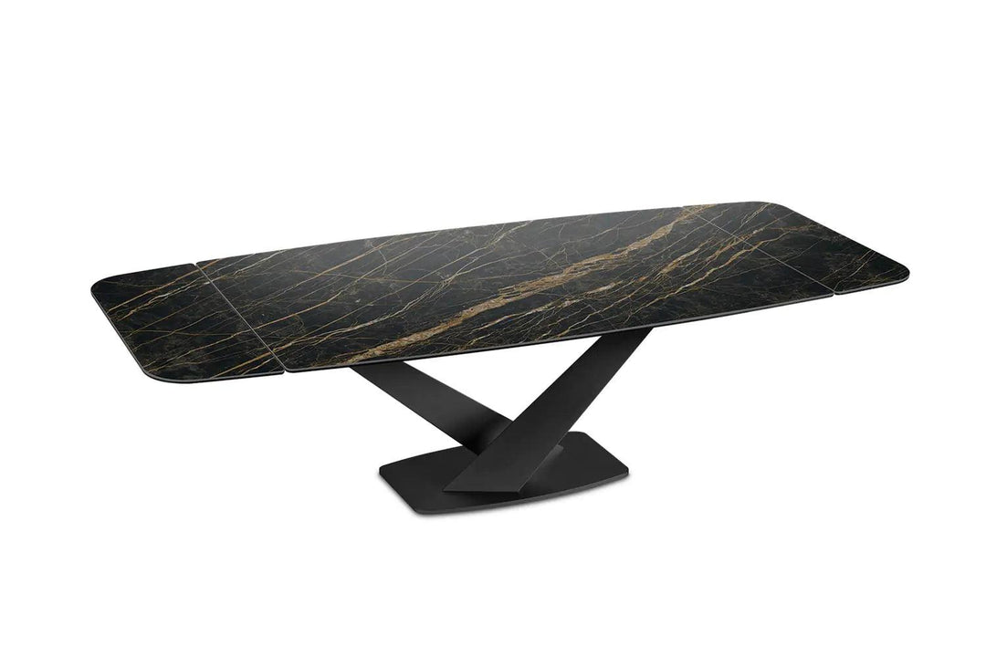 Luxurious Ceramic Top: The Zeus table doesn’t merely serve functionality but does so with a dash of opulence, presenting meals upon a luxurious ceramic top available in a variety of finishes to suit your aesthetic preferences.