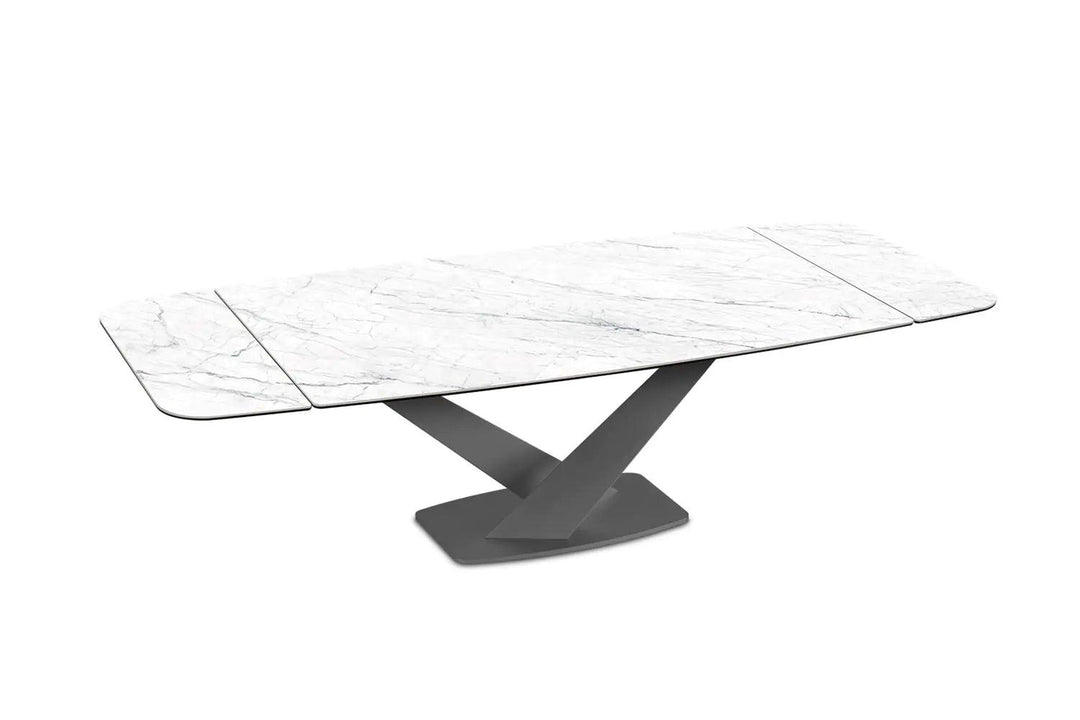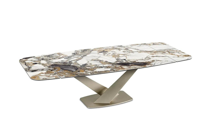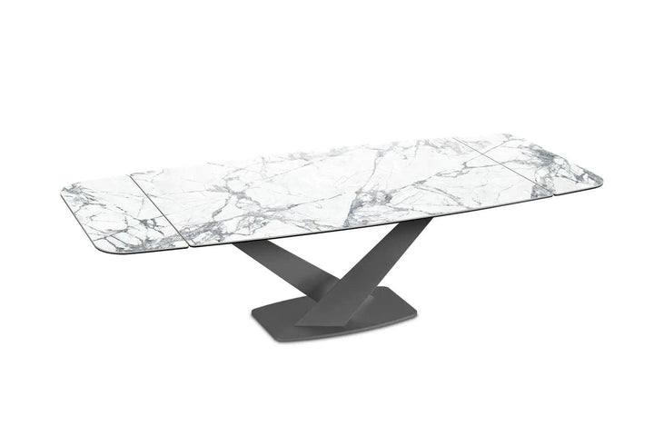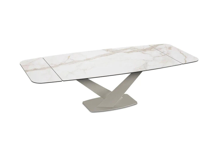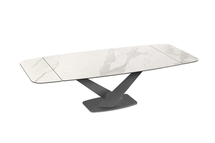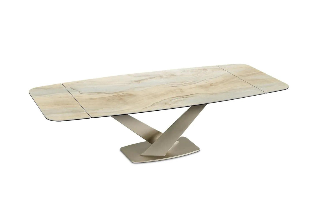 Luxurious Ceramic Top: The Zeus table doesn’t merely serve functionality but does so with a dash of opulence, presenting meals upon a luxurious ceramic top available in a variety of finishes to suit your aesthetic preferences.