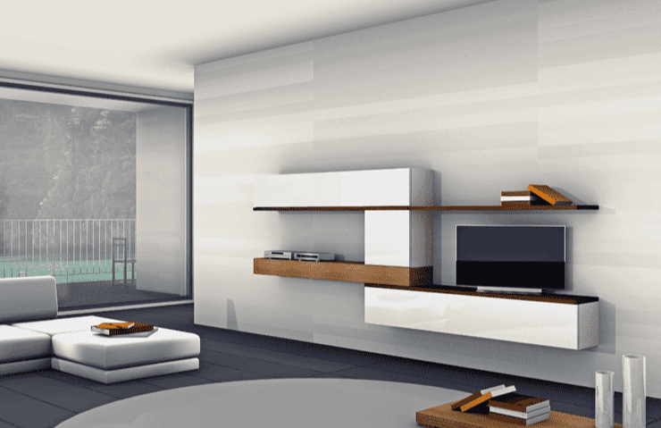 The Geo "C" is characterized by a variable geometry that is obtained with a combination of lacquered storage units and deep walnut natural veneer drawers and different thicknesses. A simple result and yet a remarkable effect. Wall-hung sideboard storage units with doors and drawers equipped with a push-pull opening system. Optional LED backlighting is available.