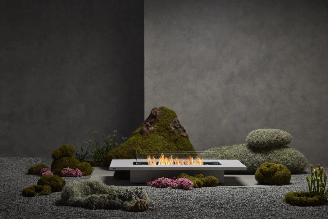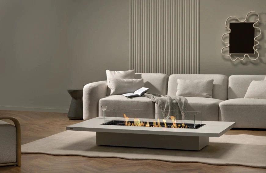 An ultra-modern, sophisticated, dual-function fire pit table that provides the perfect centerpiece for larger interior or exterior lounge settings. With its linear design and functional proportions, the low-height fire table brings a refined ambiance to your surroundings, giving you a drawcard piece of fire furniture and a practical table setting with space for food and drinks. The ideal freestanding fireplace for when you’re entertaining.
