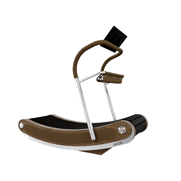 The IRENA Luxury Treadmill by PENT Fitness is a stunning addition to their collection, showcasing genuine wood and leather craftsmanship. This manual treadmill requires no electricity, relying on your leg movements to propel the tread slats forward, making it an eco-friendly and efficient choice for your luxe home gym. Shown in Natural Walnut, the IRENA treadmill combines stainless steel, bronze, leather, and natural wood, creating a masterpiece of fitness equipment suitable for home, hotel, and yacht gyms.