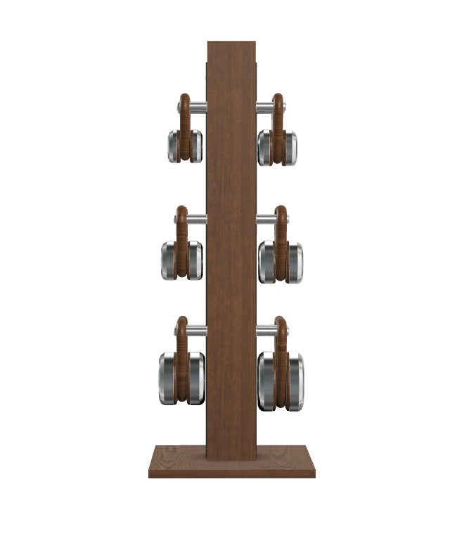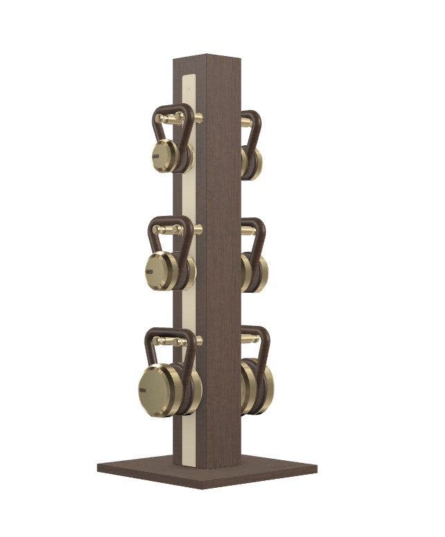 Experience the fusion of functionality and luxury with the LOVA VERTICAL Complete Kettlebell Set by Pent Fitness. Designed for modern fitness aficionados, this kettlebell set stands out with its sleek stainless steel weights and opulent walnut or ash grips. The meticulously crafted wood tower and base, adorned with full-grain leather inserts, showcases sophistication while ensuring durability. Whether you're performing kettlebell swings, lifts, or squats, this set promises an unmatched workout experience, exuding elegance at every glance. Conveniently, no assembly is required, making it a seamless addition to your fitness space.