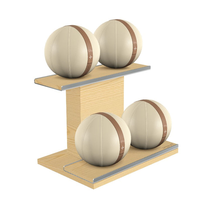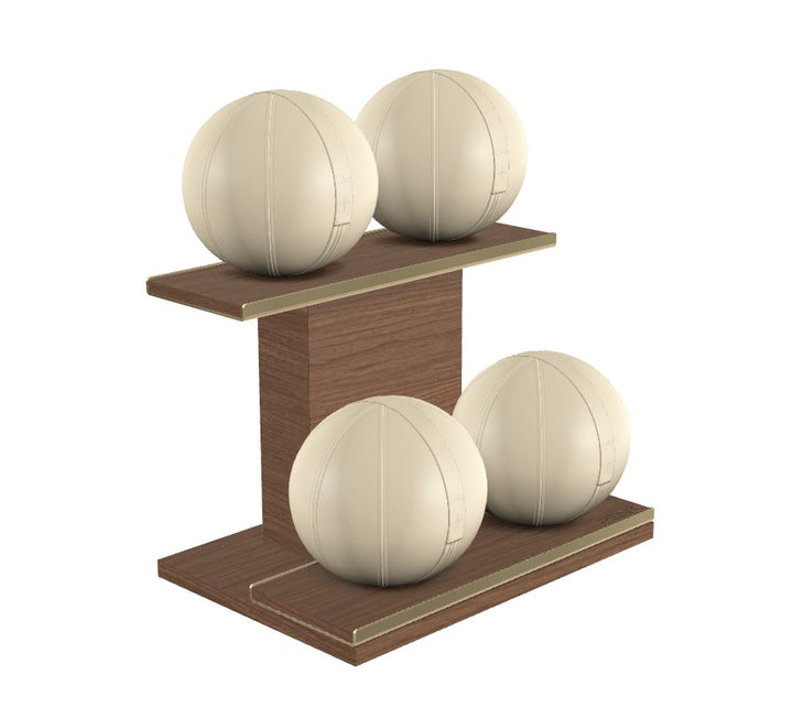 Introducing the MOXA Power Medicine Ball Set – where luxury intersects with high-intensity training. Crafted for the dedicated fitness connoisseur, this set boasts full-grain leather in a palette of chic colors including beige, brown, black, grey, and white. Every ball radiates sophistication with its impeccable saddle-stitched seams. The base, a masterpiece in itself, is carved from natural wood and boasts a lustrous Natural Walnut finish. Complemented by sleek stainless shelf trims, it embodies modern design and craftsmanship. From core workouts to strength training, select from an array of weights tailored for optimum performance. And as a nod to its premium design, primary photos magnificently spotlight the Natural Walnut wood paired with a rich Beige leather, elegantly offset by Black leather