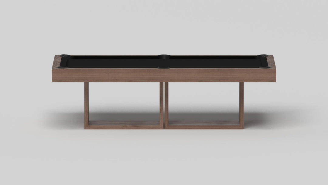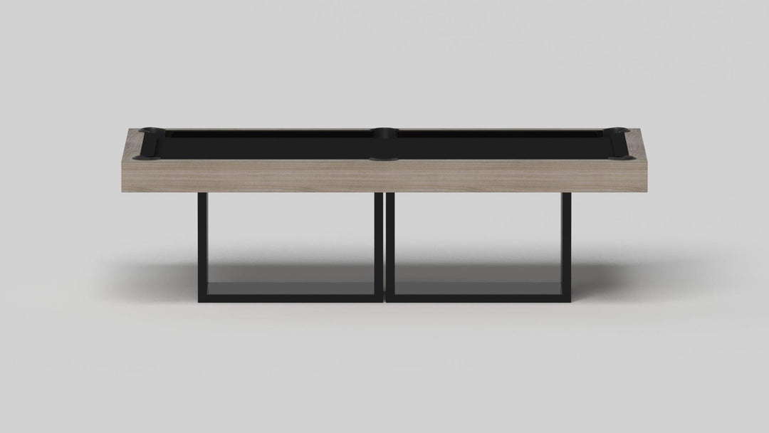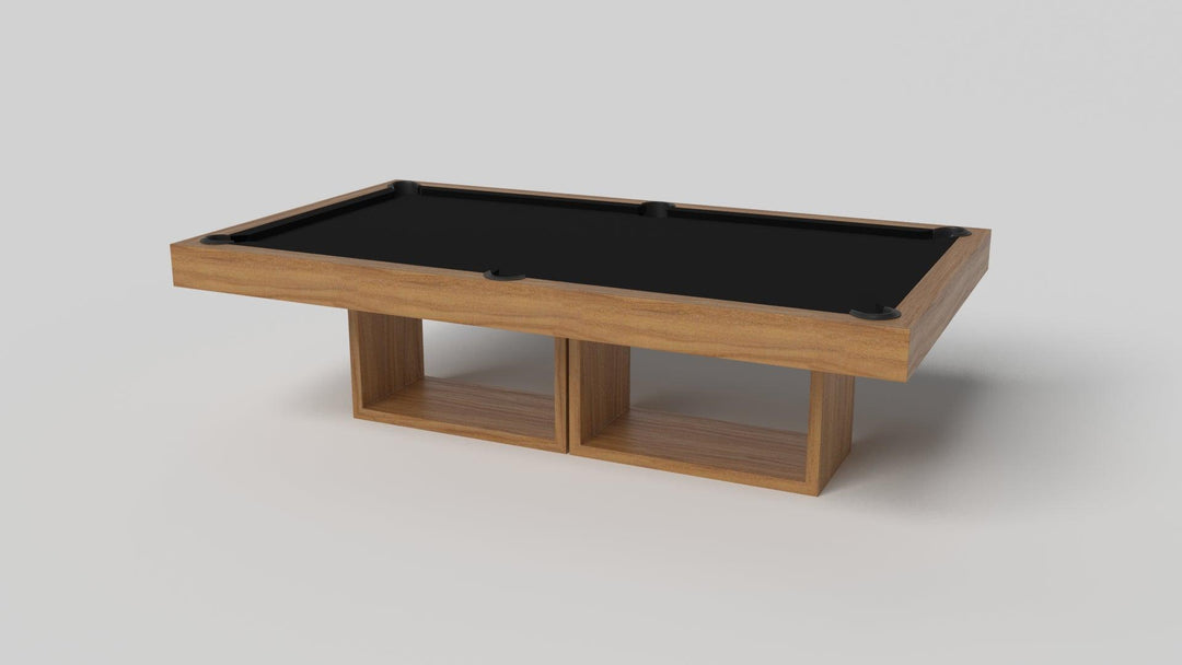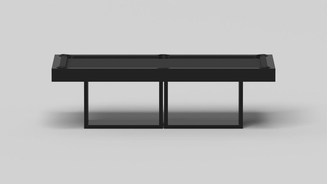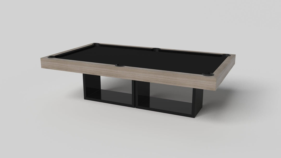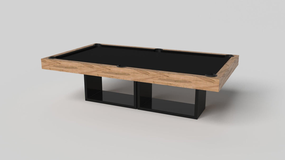 Discover the epitome of modern elegance with the AMBROSIA Pool Table by Elevate Customs. Crafted with meticulous attention to detail, this hand-sanded hardwood masterpiece redefines the pool table experience. It stands on two sleek, rectangular, open pedestals, creating a stunning interplay of solid form and negative space. The AMBROSIA Pool Table is more than just a game table; it's a statement piece that marries superior functionality with an artful design.