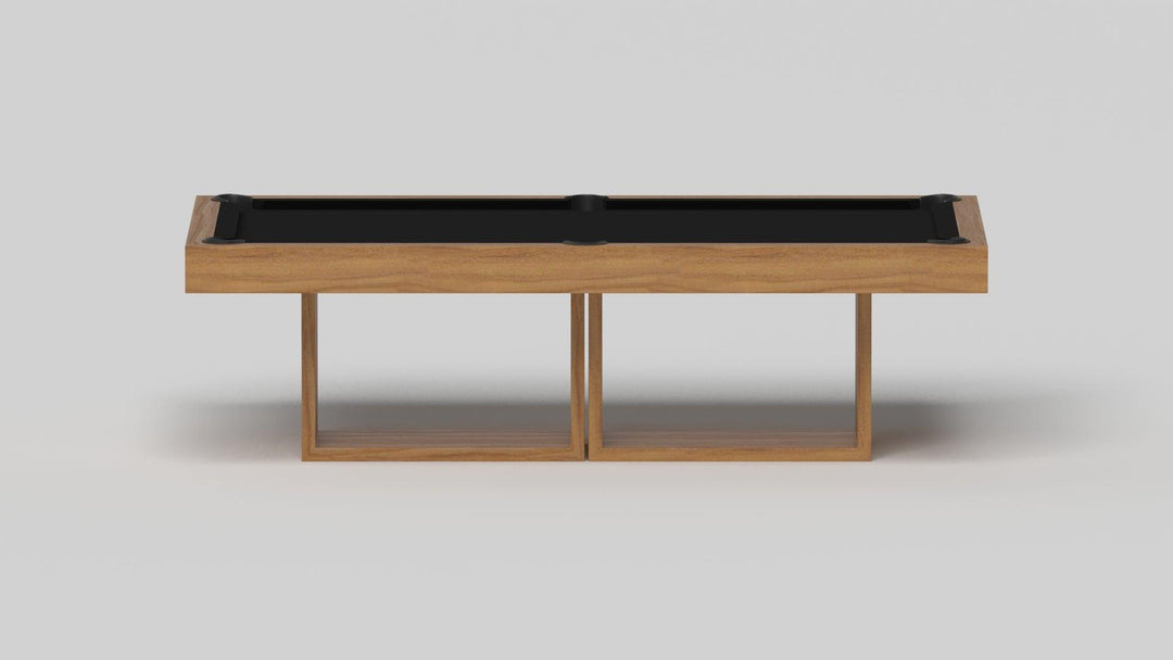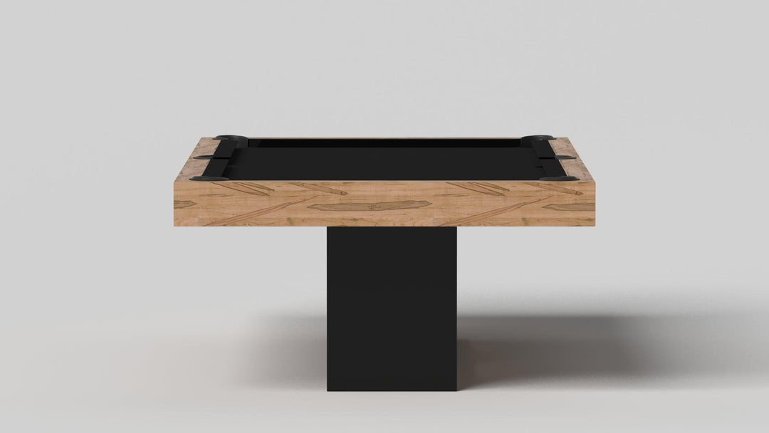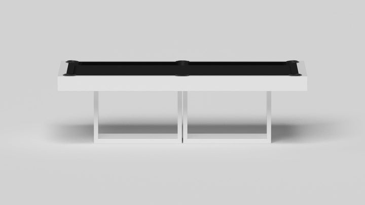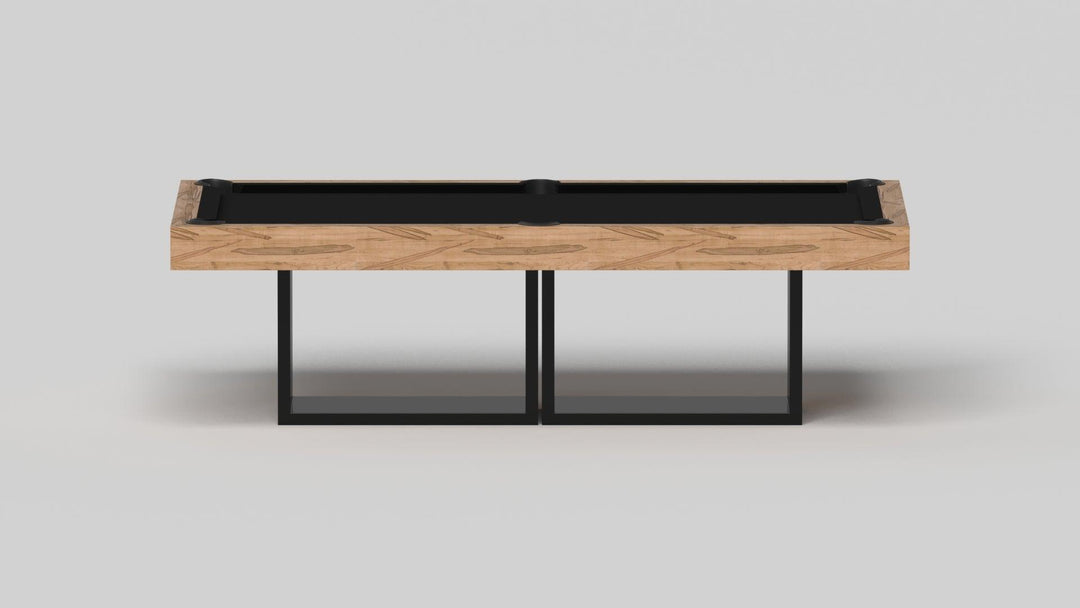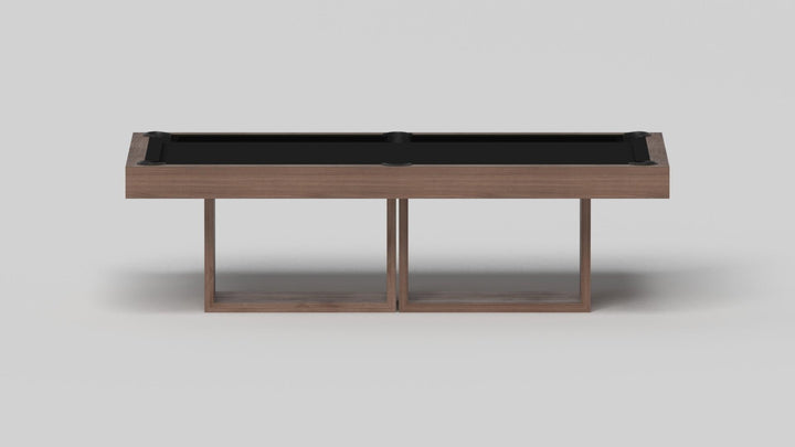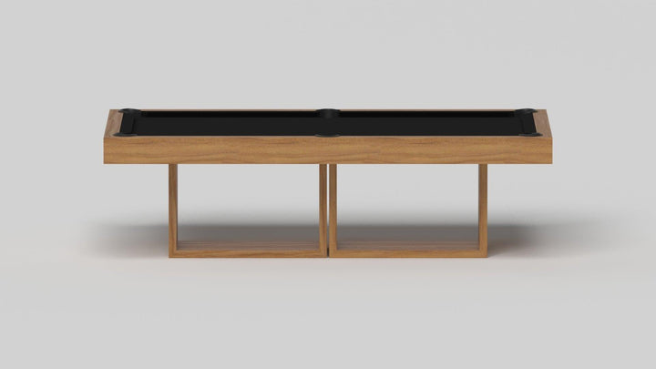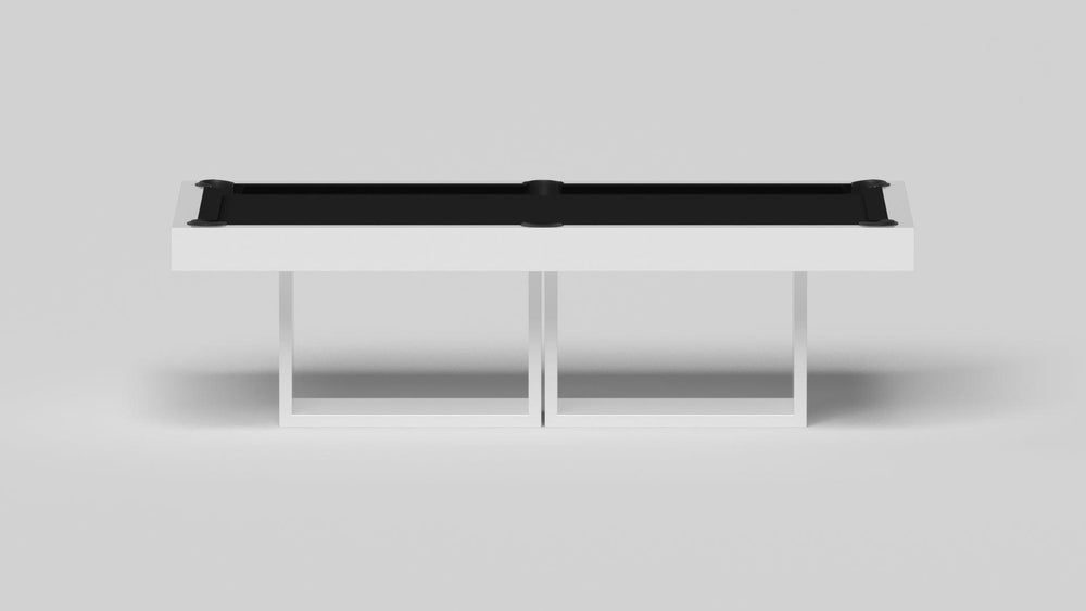 Discover the epitome of modern elegance with the AMBROSIA Pool Table by Elevate Customs. Crafted with meticulous attention to detail, this hand-sanded hardwood masterpiece redefines the pool table experience. It stands on two sleek, rectangular, open pedestals, creating a stunning interplay of solid form and negative space. The AMBROSIA Pool Table is more than just a game table; it's a statement piece that marries superior functionality with an artful design.