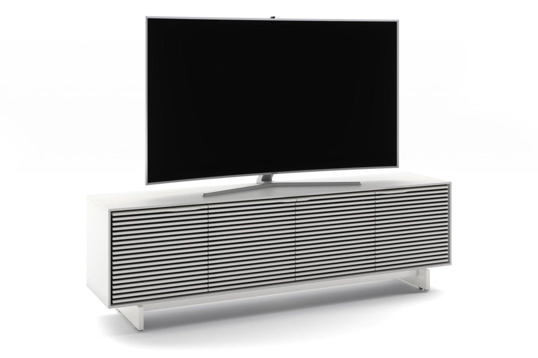 With four spacious drawers and an open shelf, the Align 7479 offers ample room for media components, accessories, and décor items while maintaining a minimalist profile. Its solid wood louvered doors allow sound and remote signals to pass freely, and the integrated cable management system ensures wires stay neatly organized. Adjustable shelves and rear access panels provide functionality, while its Satin White finish and sculpted base elevate any entertainment setup.