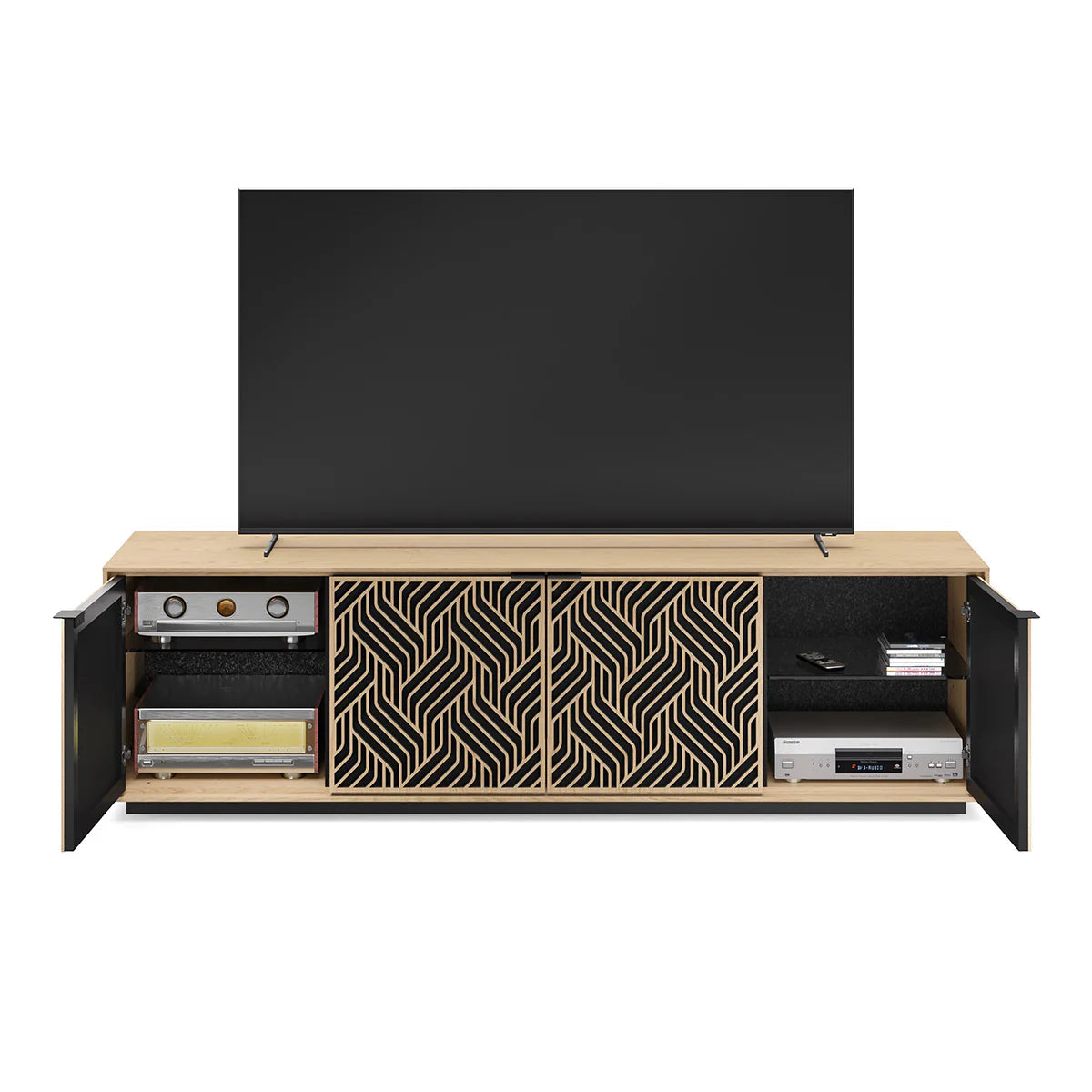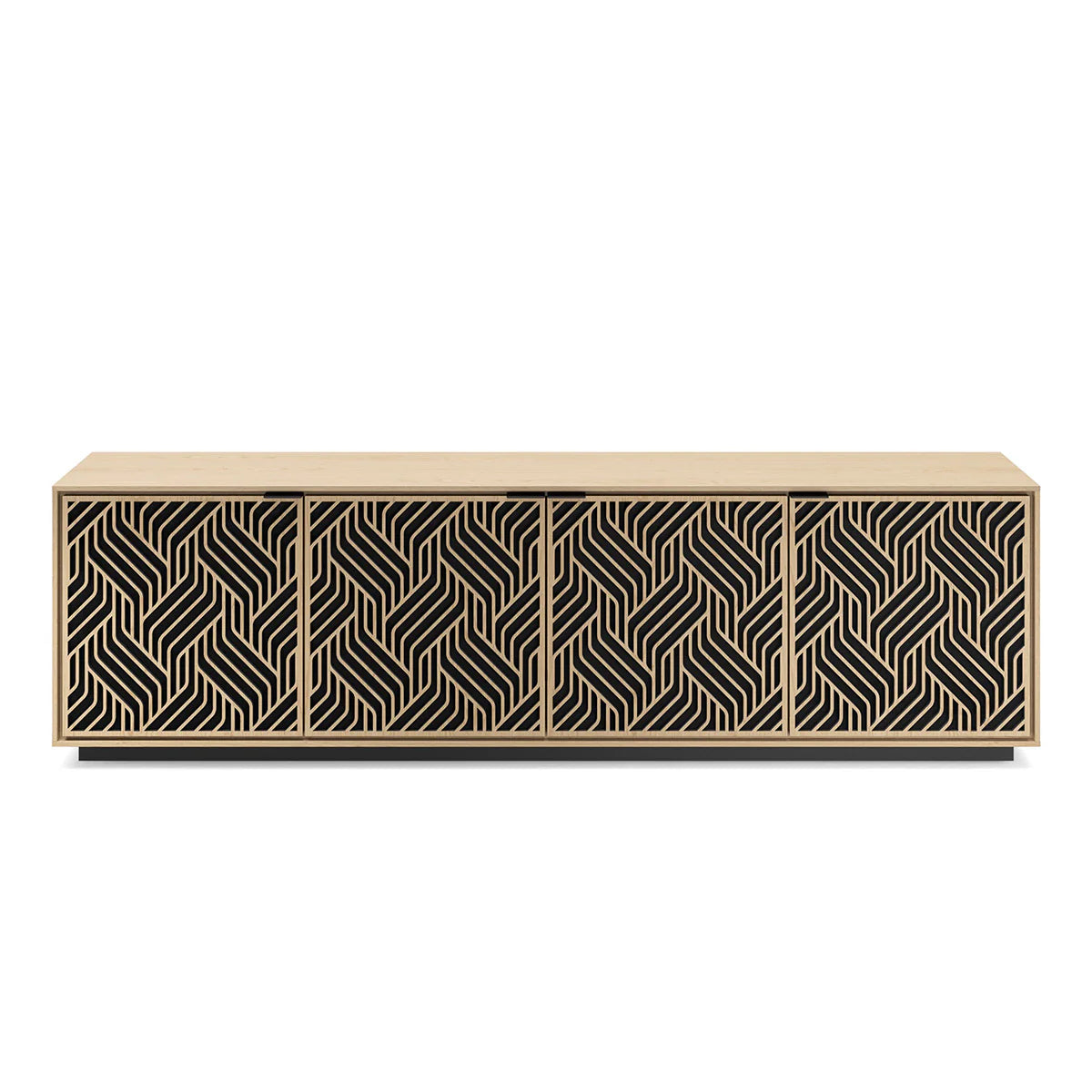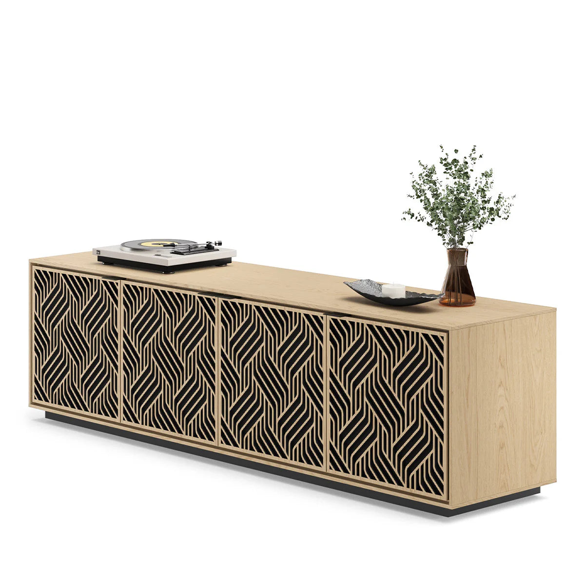 "The Weave pattern really stands out in our living room, and the internal storage is spacious enough for all our electronics. Highly recommend!" - David M.