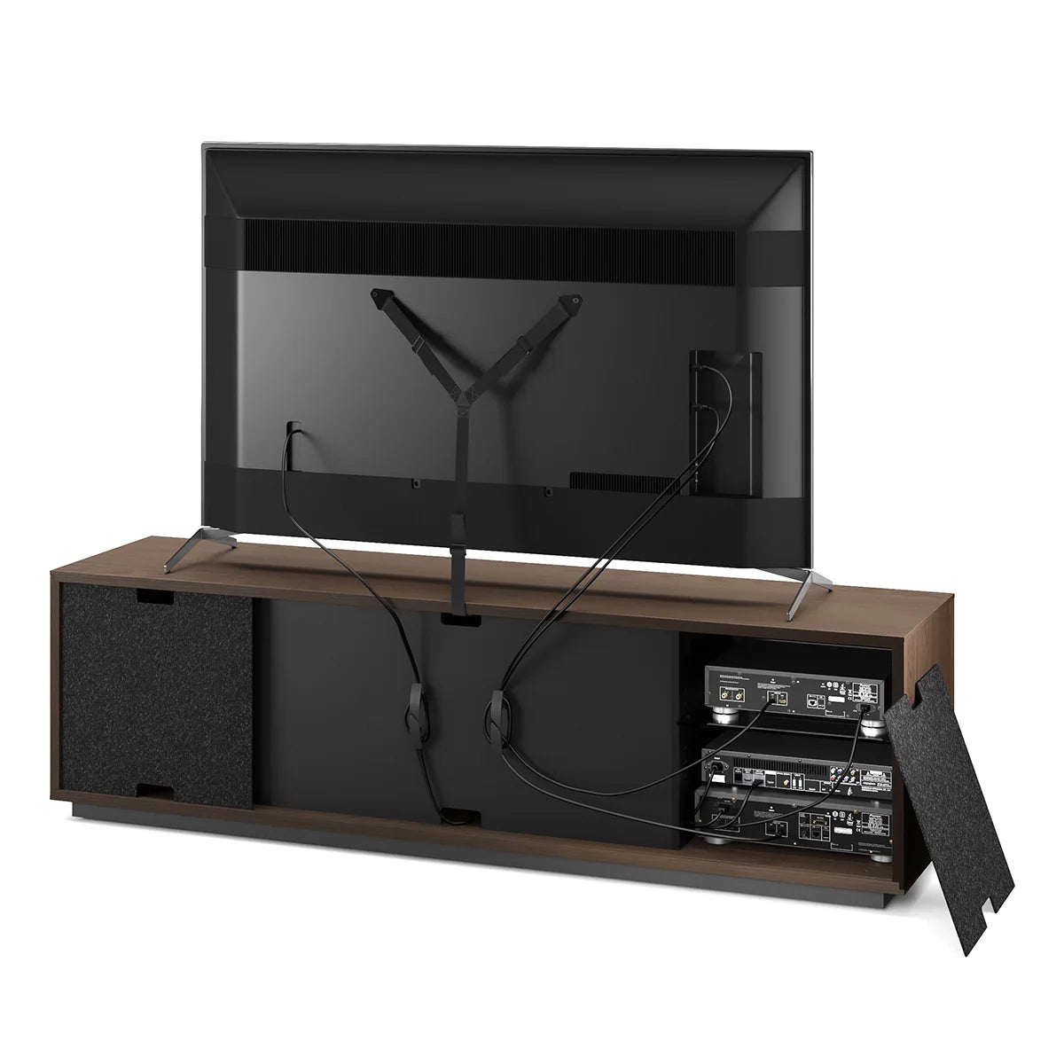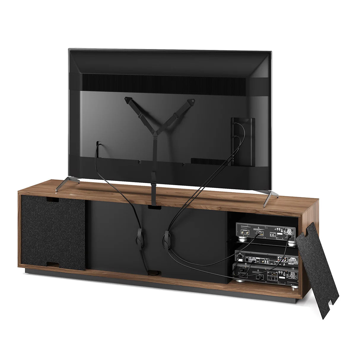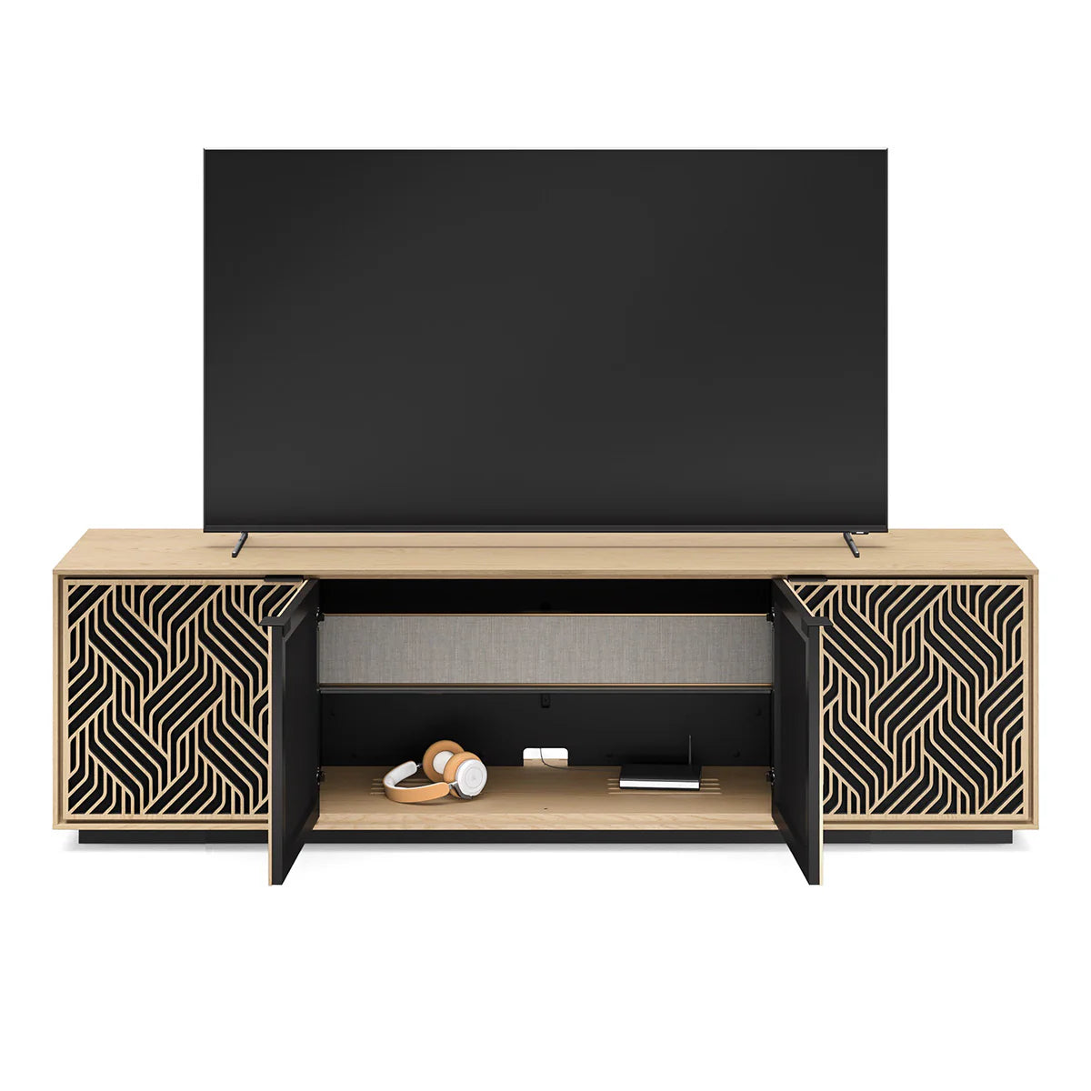 The BDI Elements 8703 Media + Storage Cabinet, featuring the Weave door pattern, is a harmonious blend of organic design and advanced functionality. Crafted to accommodate media setups and storage needs, this cabinet combines style with substance. The sleek Rolling Plinth Base with hidden wheels ensures smooth mobility, allowing effortless access to components. With its remote-friendly doors, soft-close functionality, and acoustically transparent materials, the Elements 8703 is designed to elevate both the form and function of your living space.