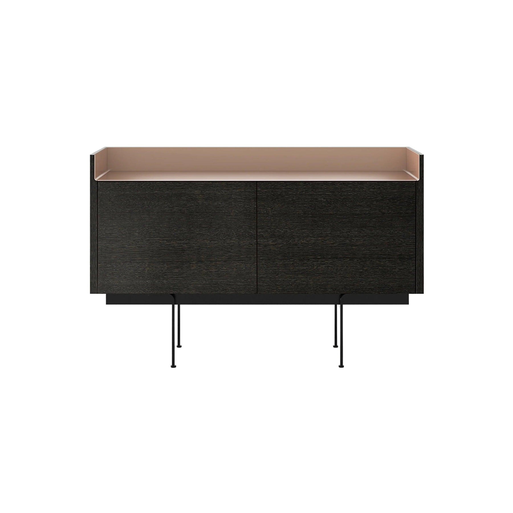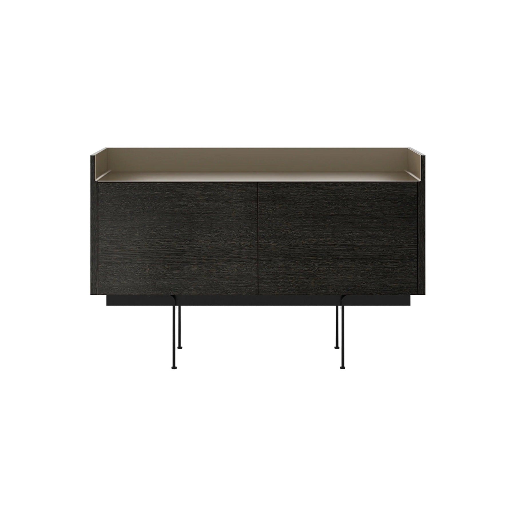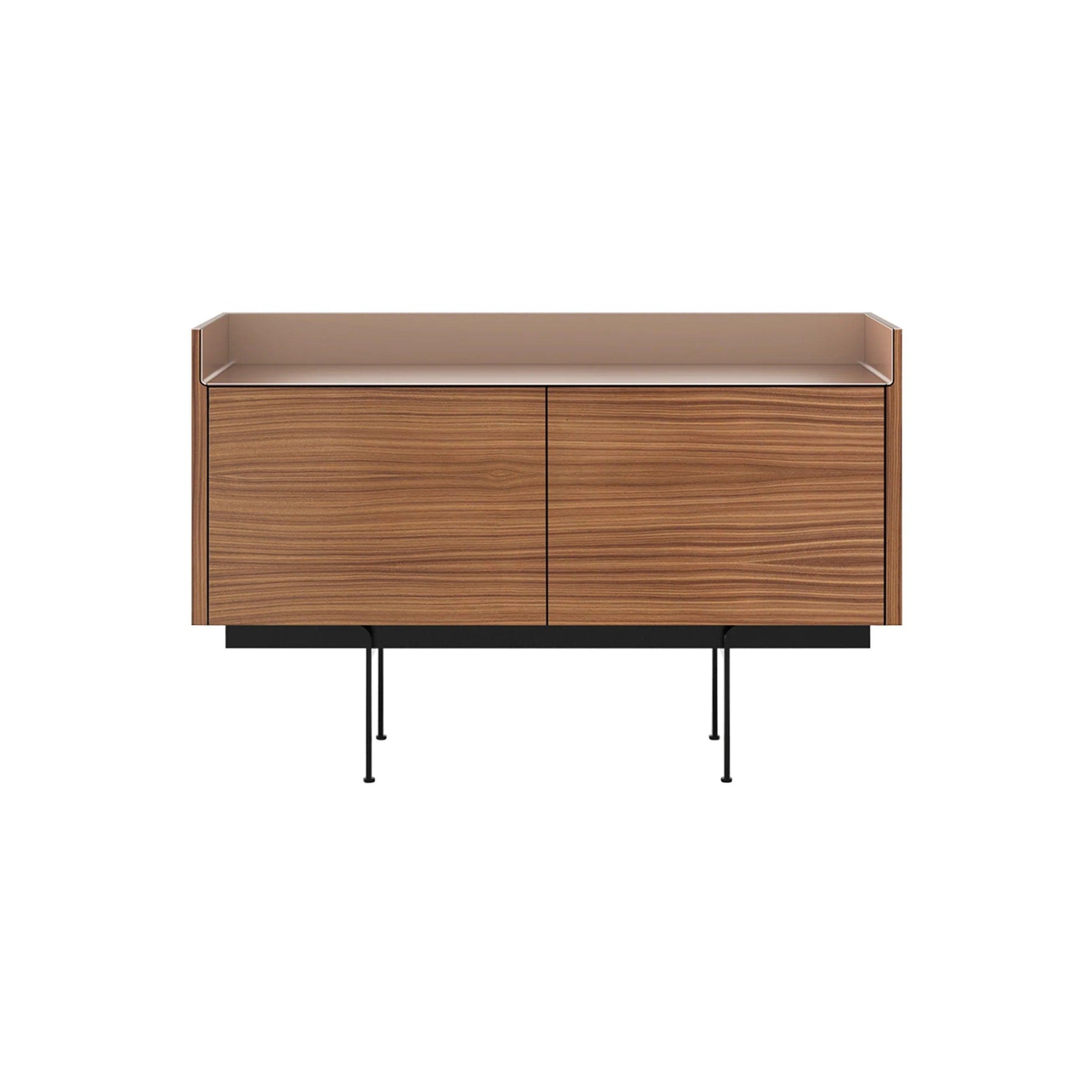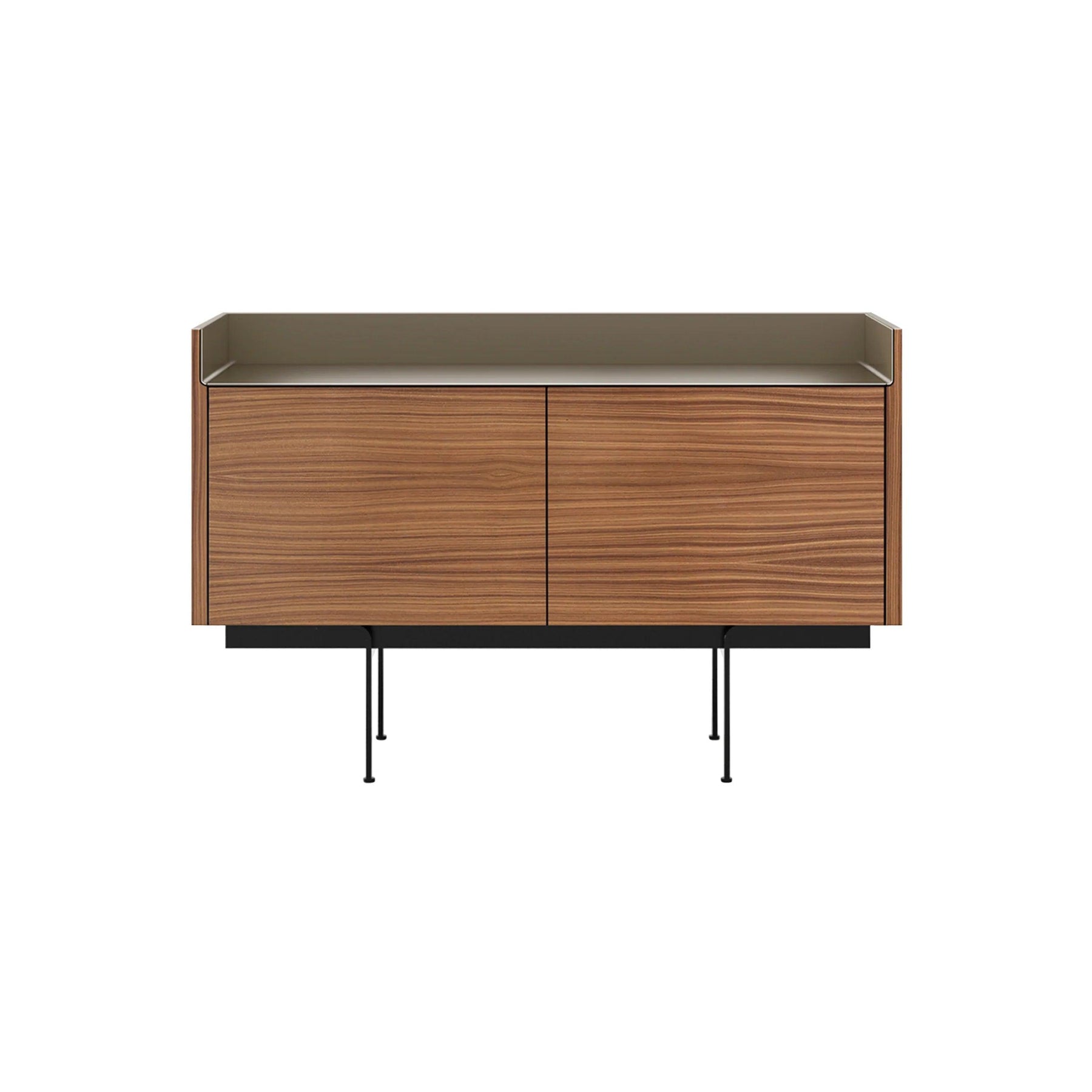 Designed by Mario Ruiz, the Stockholm 2 Door Sideboard is a compact yet elegant storage solution that beautifully blends form and function. Its clean lines and rich oak or walnut veneer present a minimalist aesthetic that can seamlessly integrate into any room. The standout feature of this sideboard is its distinctive metallic top, available in a variety of anodized aluminum hues, that adds a touch of sleek sophistication.