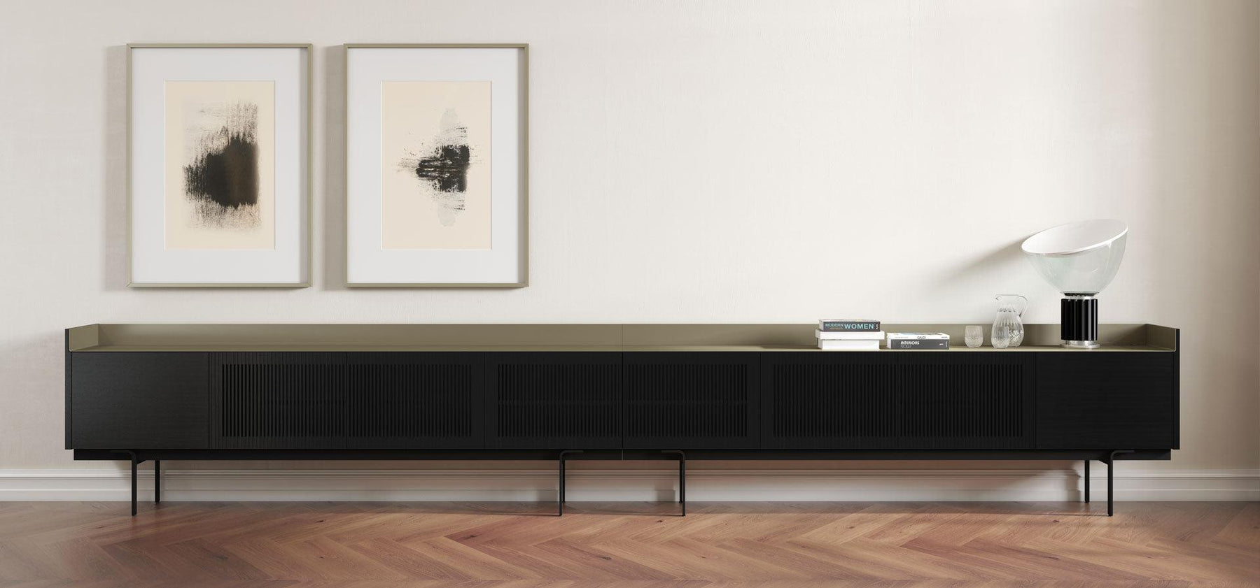 Made with a strong emphasis on aesthetics and functionality, the sideboard features four expansive doors, providing ample storage space for all your essentials. Its intricate design details, such as the anodized aluminum top and sides, serve both a practical and aesthetic function. Available in various finishes, the Stockholm Technic 4-Door Sideboard can complement a wide range of interiors, making it an essential addition to any home or office.