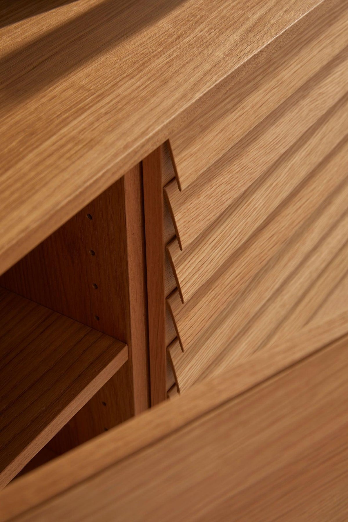Crafted from the finest materials, the sideboard exudes an inviting warmth that is typical of Woodgate's style. The sideboard provides ample storage space with its multiple compartments, marrying practicality with elegance.