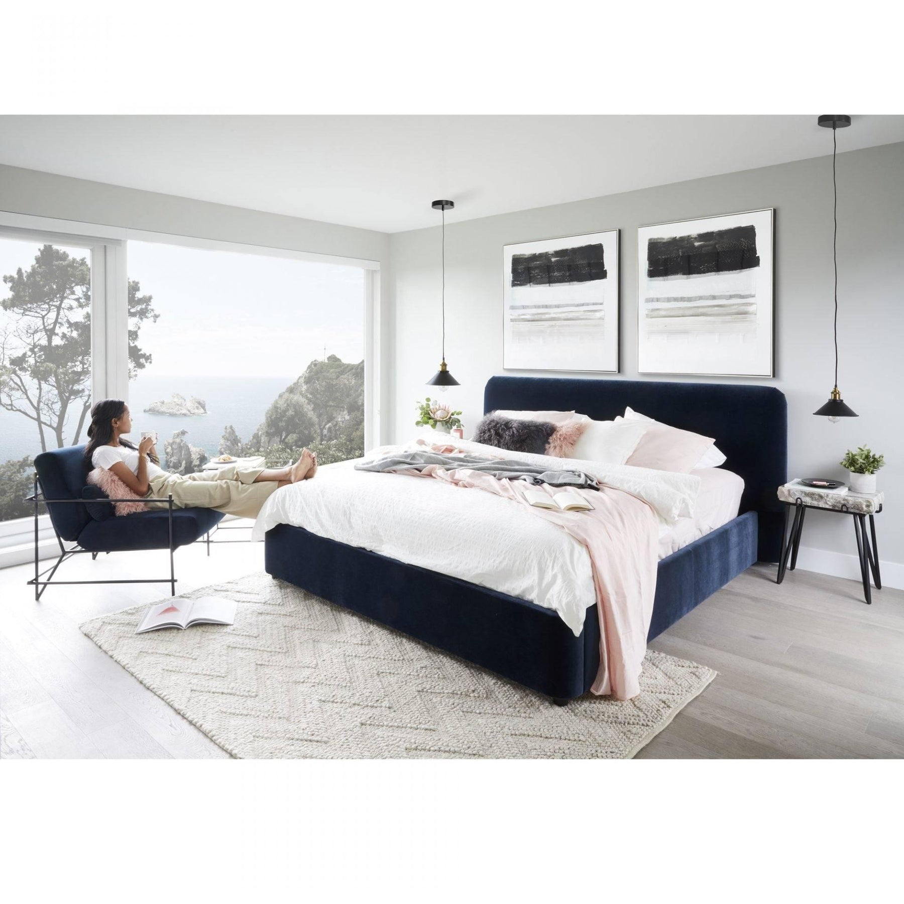 Catch Z's with the Samatra Bed! Constructed from solid wood and upholstered with a rich-colored velvet, this bed will leave you feeling like a star. Filled with foam for a plush look, don't get mad at us if you never want to leave this bed.
