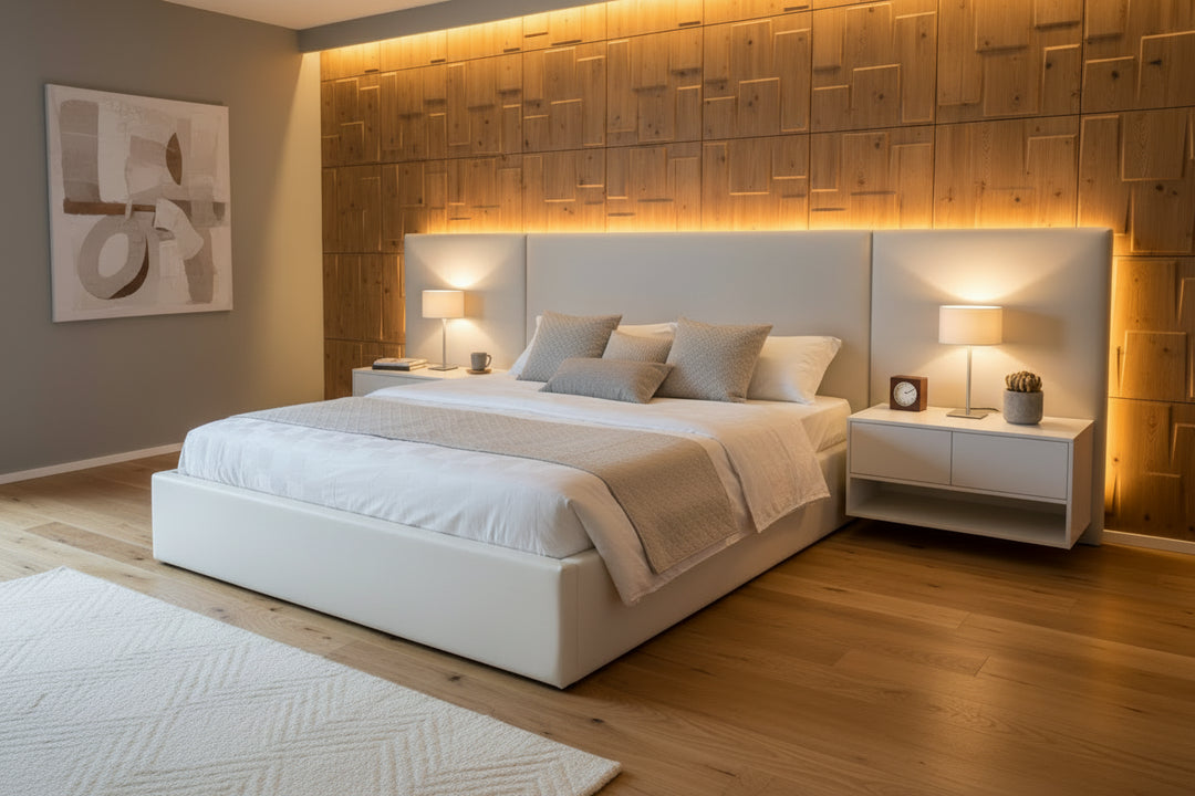Matching modern nightstands and bedside tables can enhance the functionality and aesthetics of your bedroom, with some contemporary beds featuring built-in nightstands or innovative storage options. Low bed frames and proper modern bedroom lighting can create an illusion of more space in small bedrooms, while storage beds offer hidden areas for extra storage. Check out Huppe Furniture for a wide selection of contemporary beds and modern bed frames, including panel beds and storage beds, to find the perfect modern bed for your bedroom.