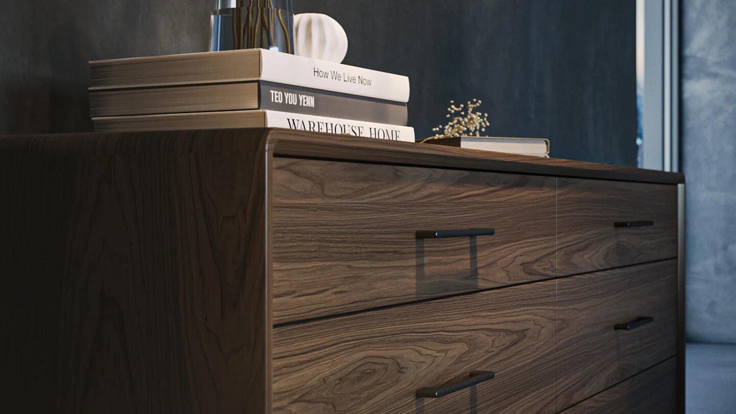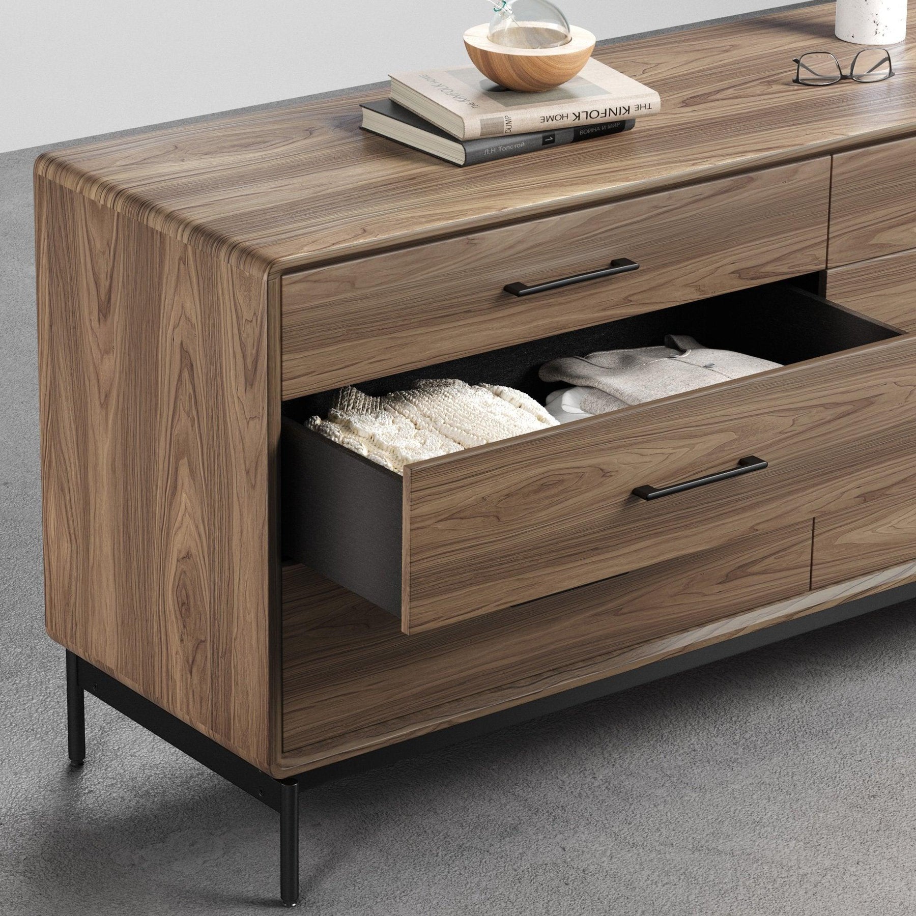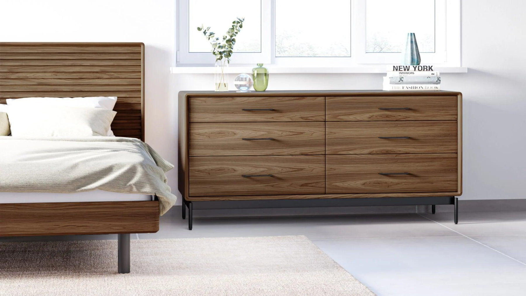 Like the 5-Drawer Chest, the dresser is made from high-quality materials, including a steel base and a wood veneer finish, which give it a durable and long-lasting construction. The dresser is also available in multiple finishes, including Charcoal Stained Ash, Toasted Walnut, and Natural Walnut, allowing you to choose the one that best complements your bedroom decor.