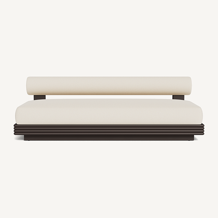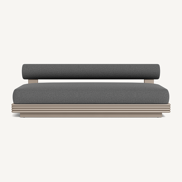 Expertly upholstered with a supportive quick-dry bench cushion and curved bolster backrest, the Collins 2 Seat Armless Sofa provides a comfortable sink-in lounging experience ideal for outdoor relaxation and entertaining. The sculptural bolster back is reinforced with a concealed aluminum substructure for stability and support, while the aluminum frame features the Collins Collection’s signature ribbed detailing along the seat deck. Designed to function both as a standalone statement piece or as part of a modular sectional configuration, this sofa adds refined architectural style to patios, terraces, and outdoor lounge spaces.