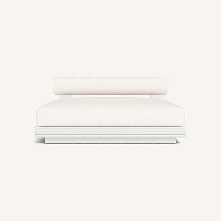 Expertly upholstered in durable performance fabric and supported by quick-dry flow-through foam cushioning, the Collins Aluminum Daybed provides a plush sink-in lounging experience ideal for poolside relaxation or outdoor entertaining. The curved bolster backrests echo the sculptural lines of the Collins Collection while offering supportive comfort for lounging or reclining. Built over a corrosion-resistant aluminum frame, this large outdoor daybed delivers lasting durability while maintaining a lightweight, refined profile perfect for modern patios, terraces, and luxury pool environments.