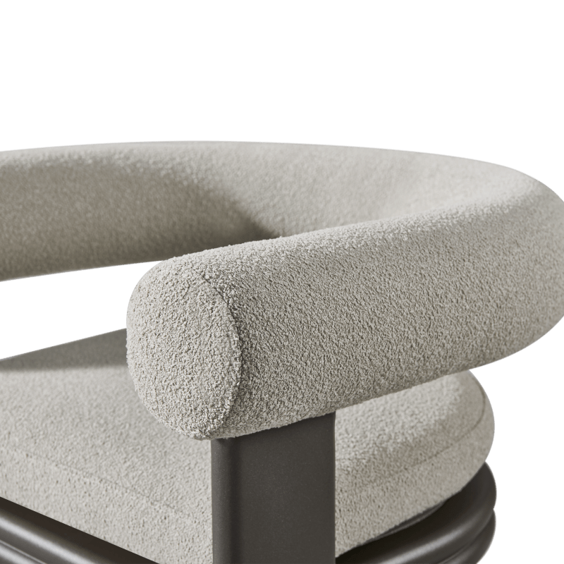Expertly upholstered with a plush quick-dry seat cushion and a curved bolster backrest, the Collins Dining Chair provides supportive sink-in comfort ideal for long outdoor meals and gatherings. The sculptural barrel-back design is reinforced with a concealed aluminum substructure for stability and strength, while the solid aluminum frame features the Collins Collection’s signature ribbed detailing along the seat deck. Designed to complement the Collins dining tables and other outdoor collections, this chair elevates any patio, terrace, or outdoor dining environment.