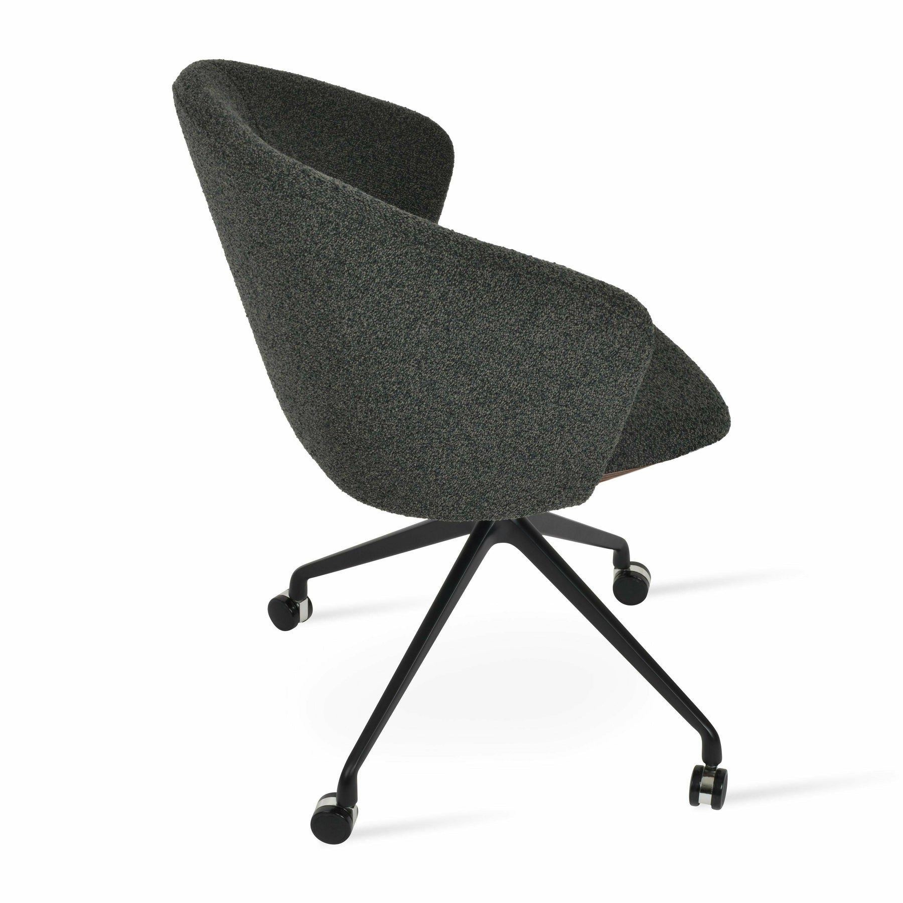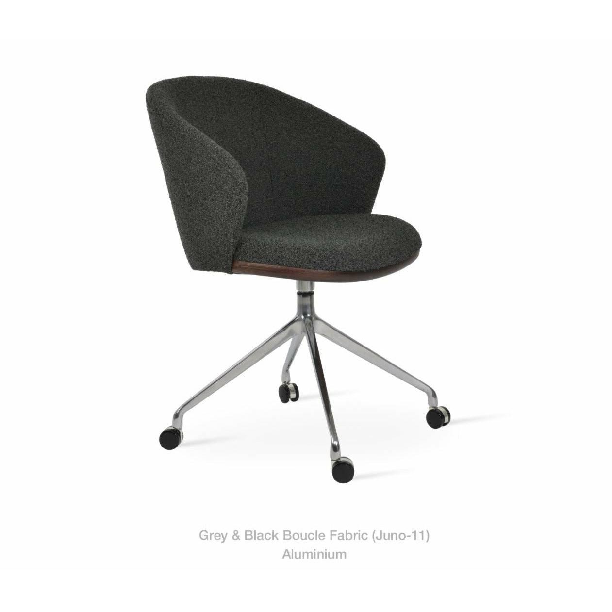 The Athena Chair is a contemporary dining chair with an upholstered seat. The legs are solid beech finished in walnut and wenge. The Industrial Modern team designs Athena Armchair, which is suitable for residential and commercial use.