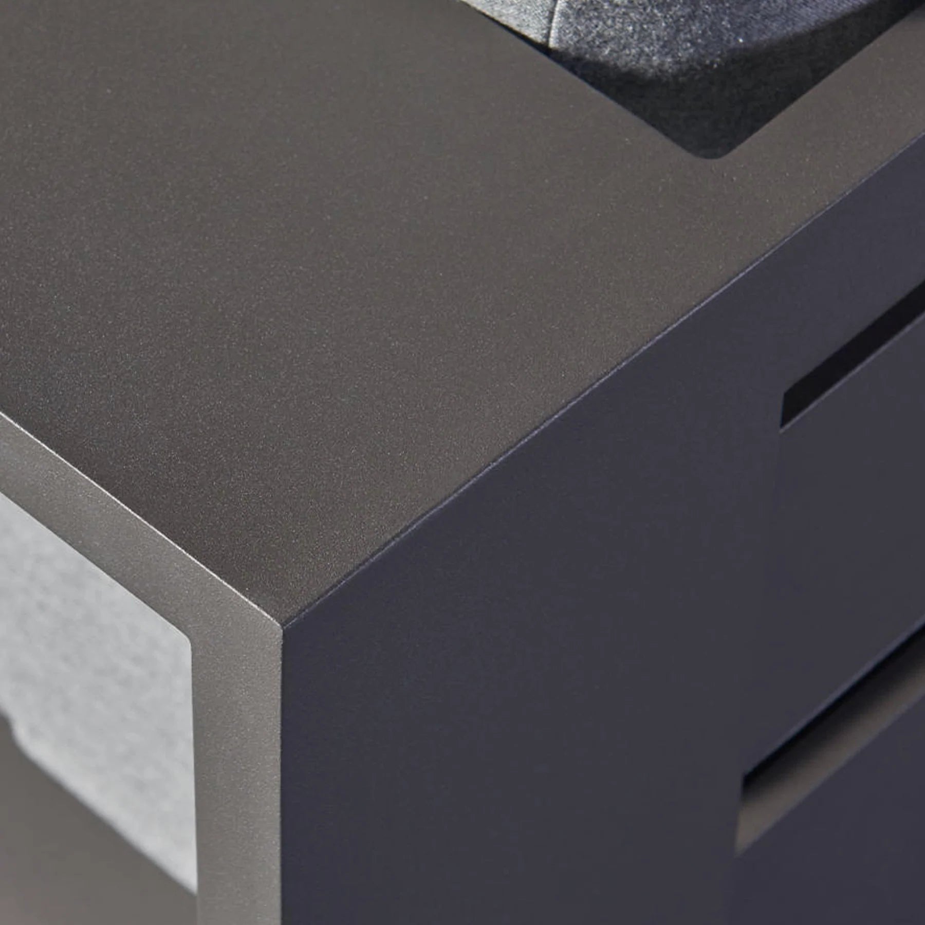 • Concealed aluminum slatting supports the sit and allows for proper flow-through of the elements