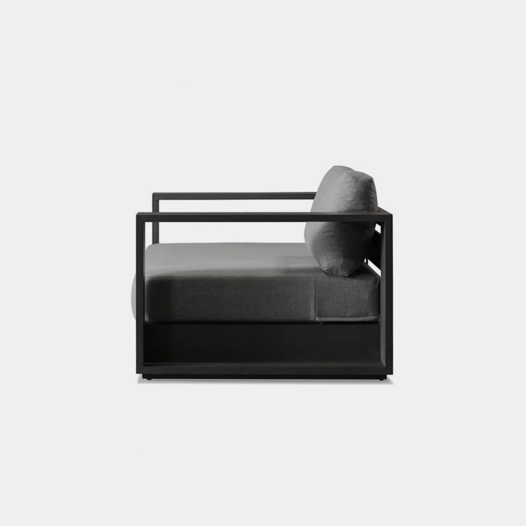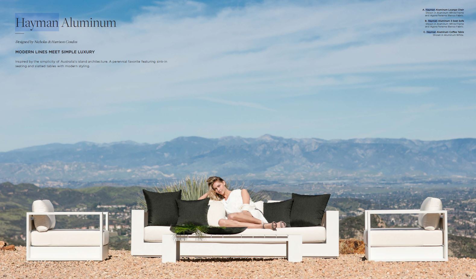 The Hayman collection is a statement of simplicity with clean angles and modern styling. Defined by its wide arms, our low–profile Hayman 2 Seat Sofa was designed to be experienced — sink into ultimate relaxation with a deep bench cushion supported by a Batyline sling suspension for added comfort, all crafted in a powder-coated extruded aluminum frame. Indoor comfort meets outdoor performance with this geometric piece made for various spaces.