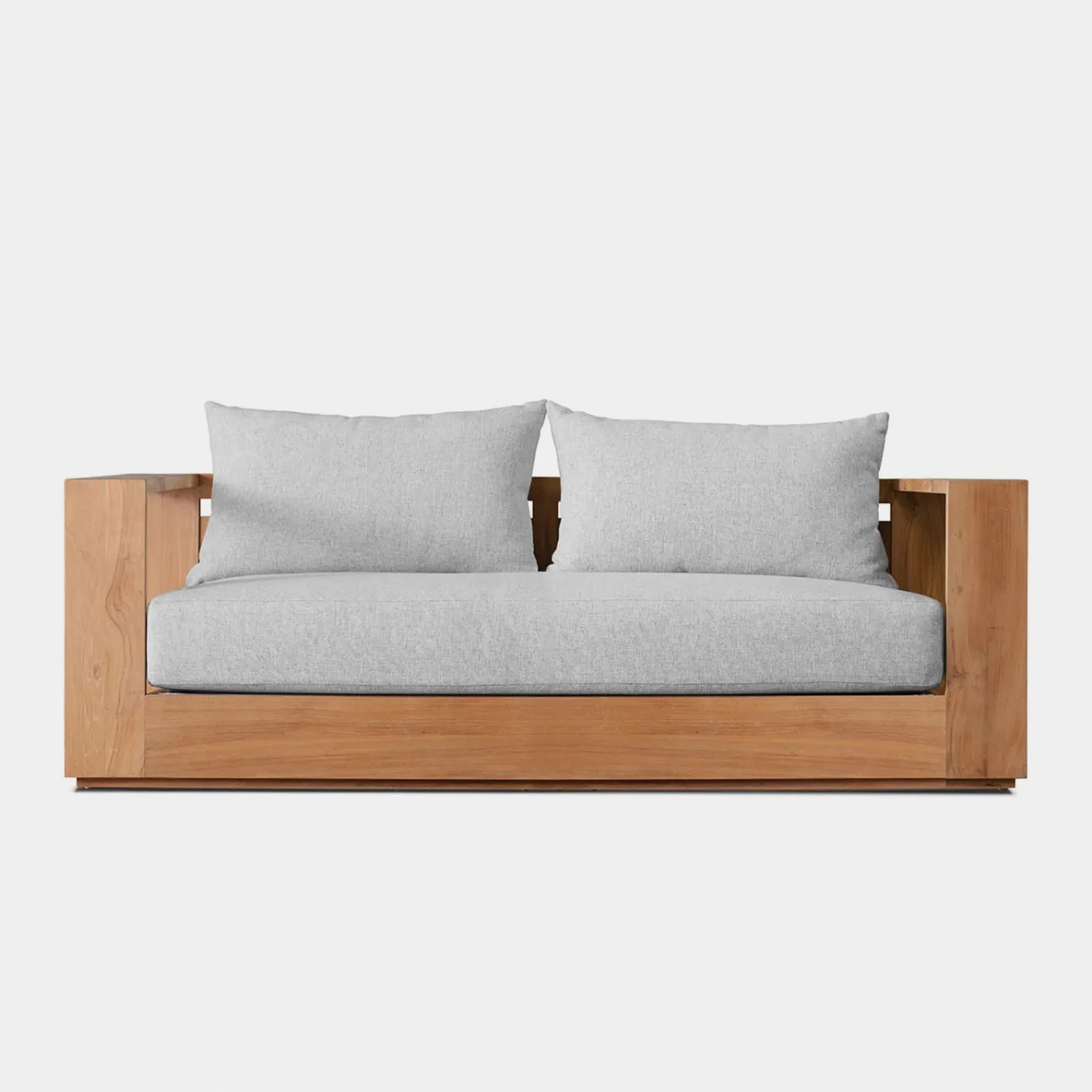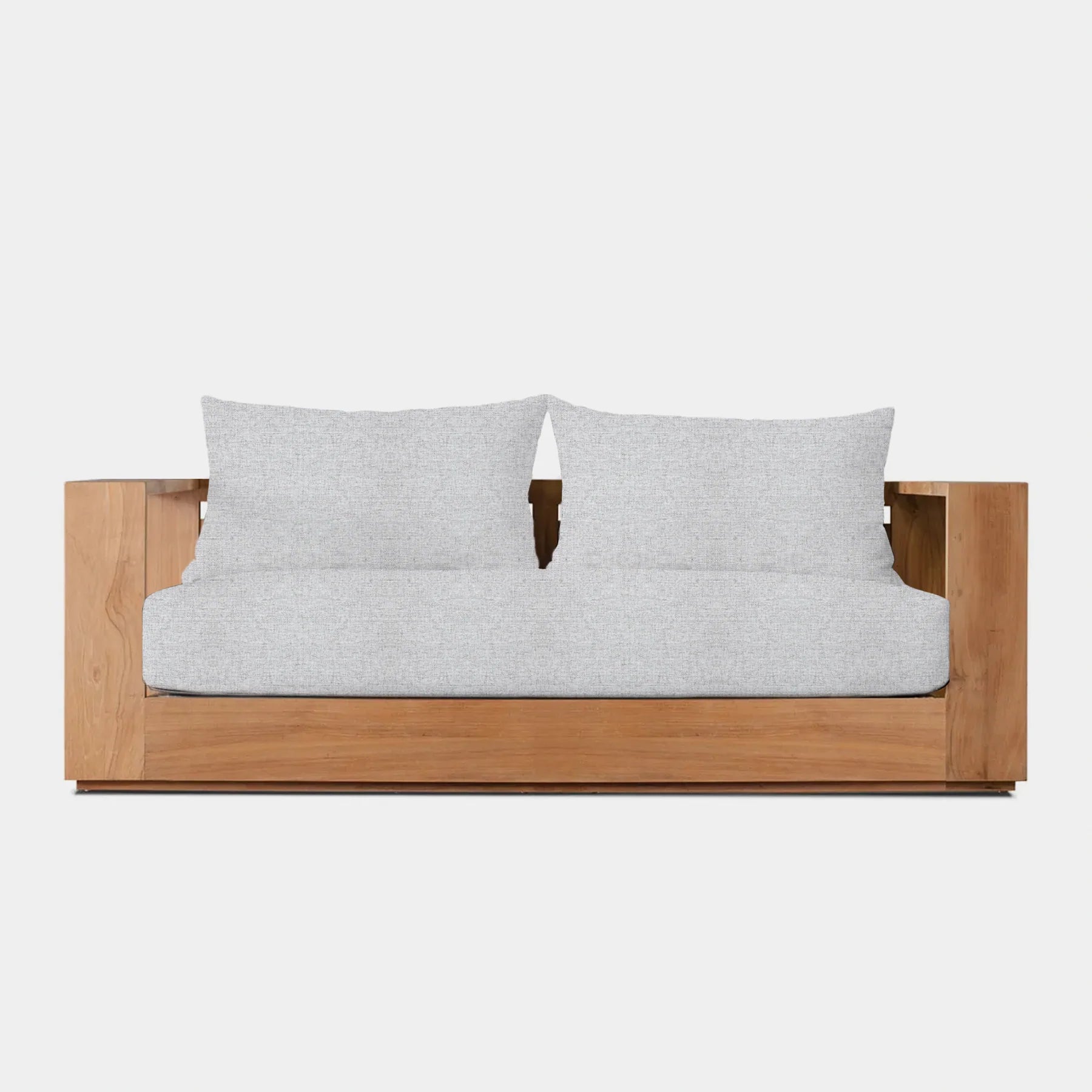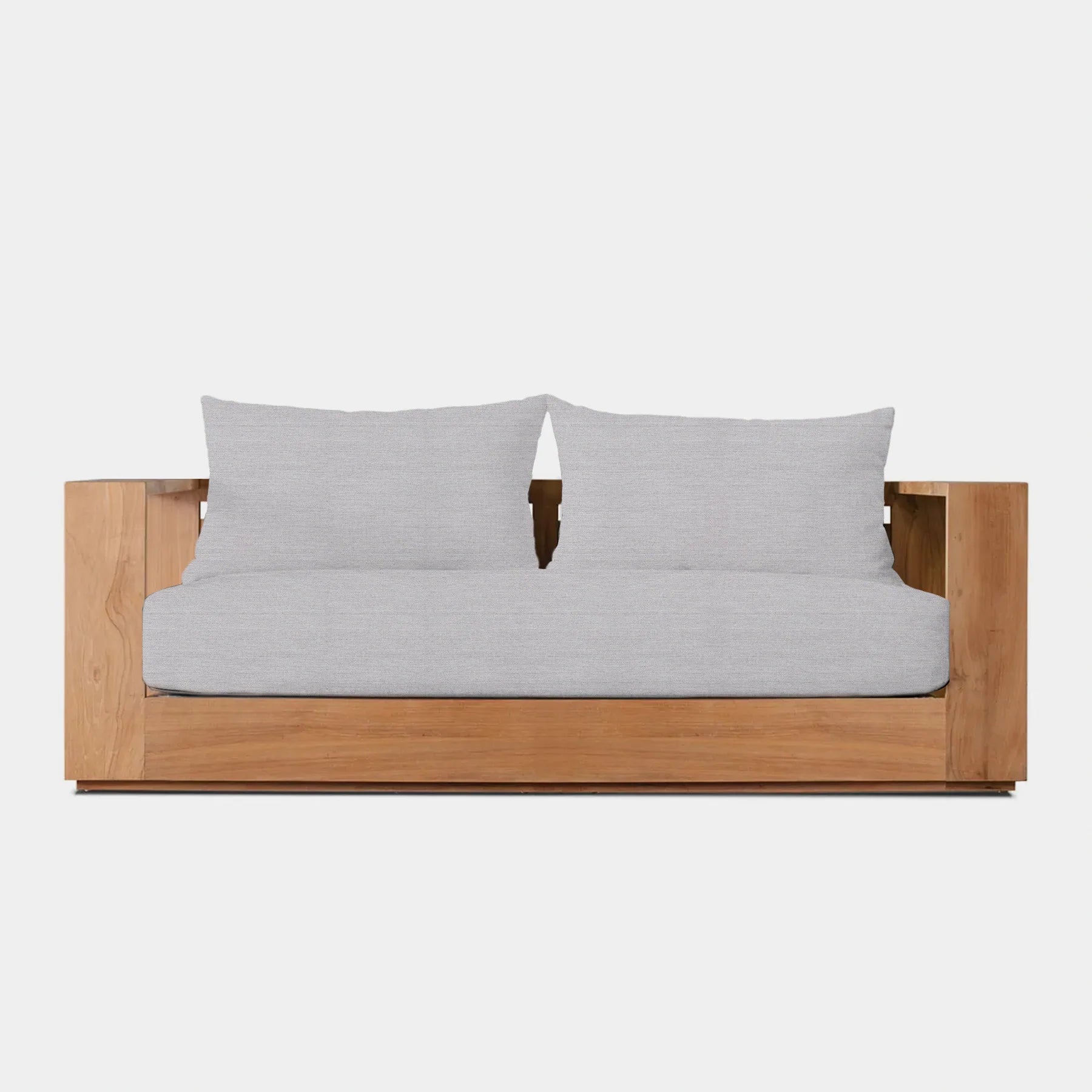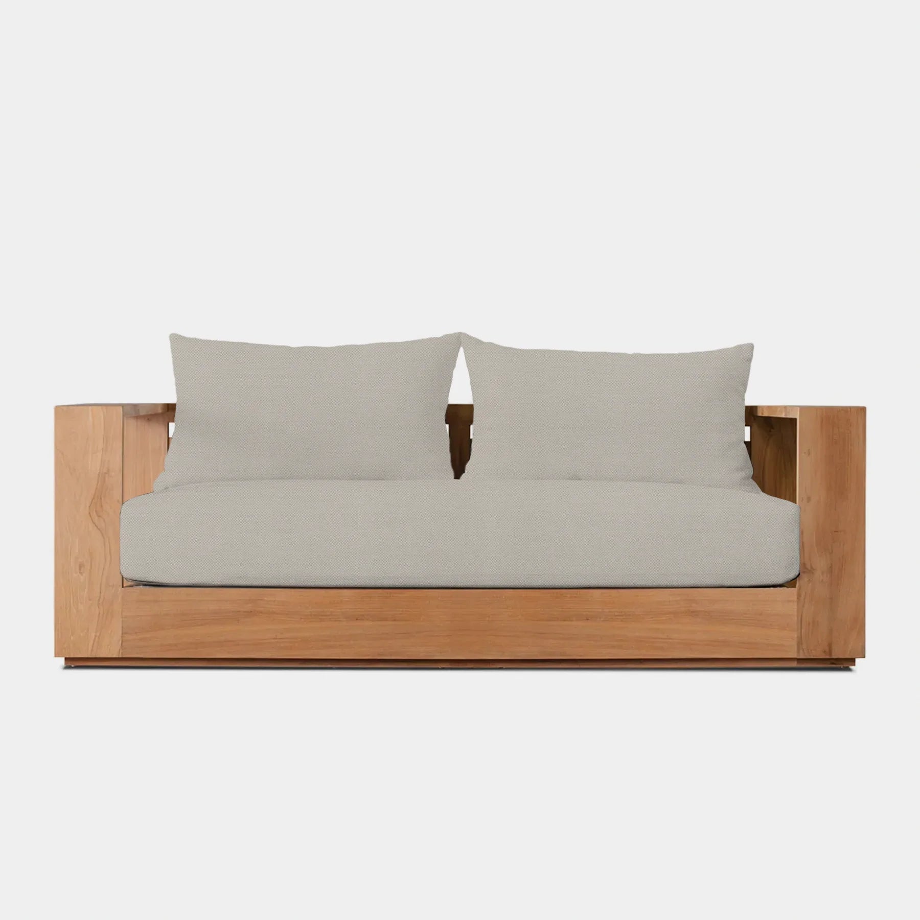 The Hayman collection is a statement of simplicity with clean angles and modern styling. Defined by its wide arms, our low–profile Hayman 2 Seat Sofa was designed to be experienced — sink into ultimate relaxation with a deep bench cushion supported by a Batyline sling suspension for added comfort, all crafted in a powder-coated extruded aluminum frame. Indoor comfort meets outdoor performance with this geometric piece made for various spaces.