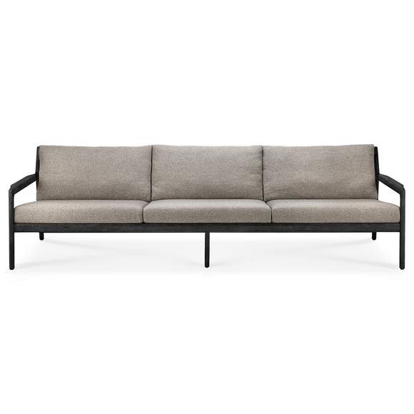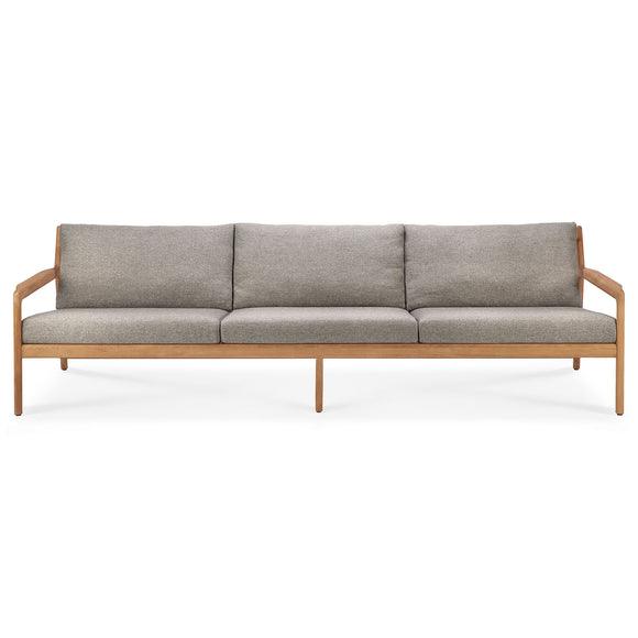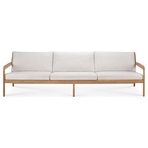 The Jack Outdoor 3 Seater Sofa by Ethnicraft, designed by Jacques Deneef, is a stunning addition to any outdoor space, merging classic lines with modern touches for timeless elegance. This sofa is crafted from solid teak wood, known for its durability and natural resistance to the elements. The cushions, wrapped in UV-resistant and waterproof upholstery, ensure comfort and durability under various weather conditions. The sofa's design features alluring angles and plush seating, making it both visually appealing and exceptionally comfortable for outdoor lounging.