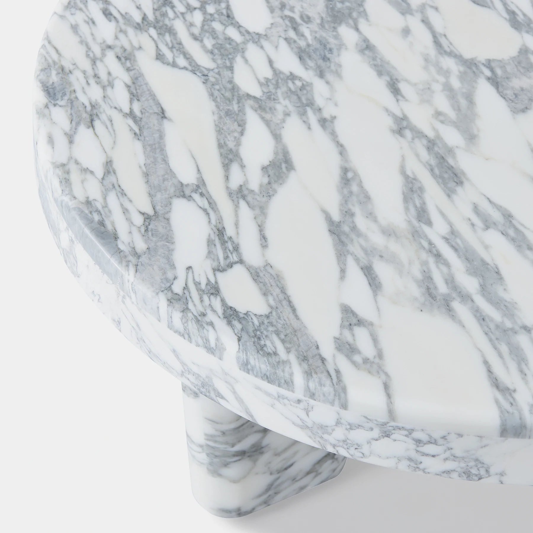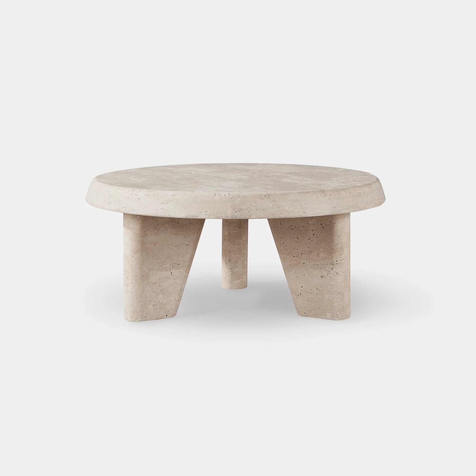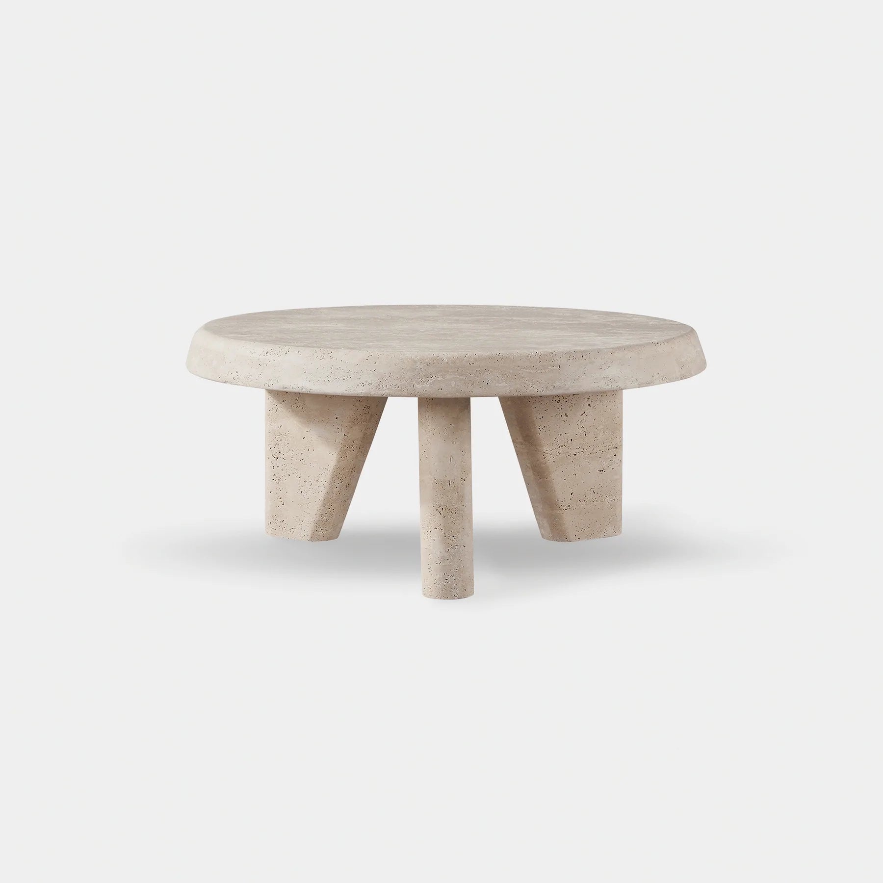 Our indoor/outdoor Lucca collection features dynamic angles, organic curves, and unique tripod construction. The Lucca Round Coffee Table 33" is a conversation piece — handcrafted from Italian Arabescato marble or European natural travertine and supported by an aluminum substructure to reduce weight. Stone sealant preserves its unique character and makes it a versatile piece for indoor and outdoor use, but wherever you place it, it will be a statement. Available in two sizes of varying heights and diameters, each can stand alone or be grouped for the perfect layering.