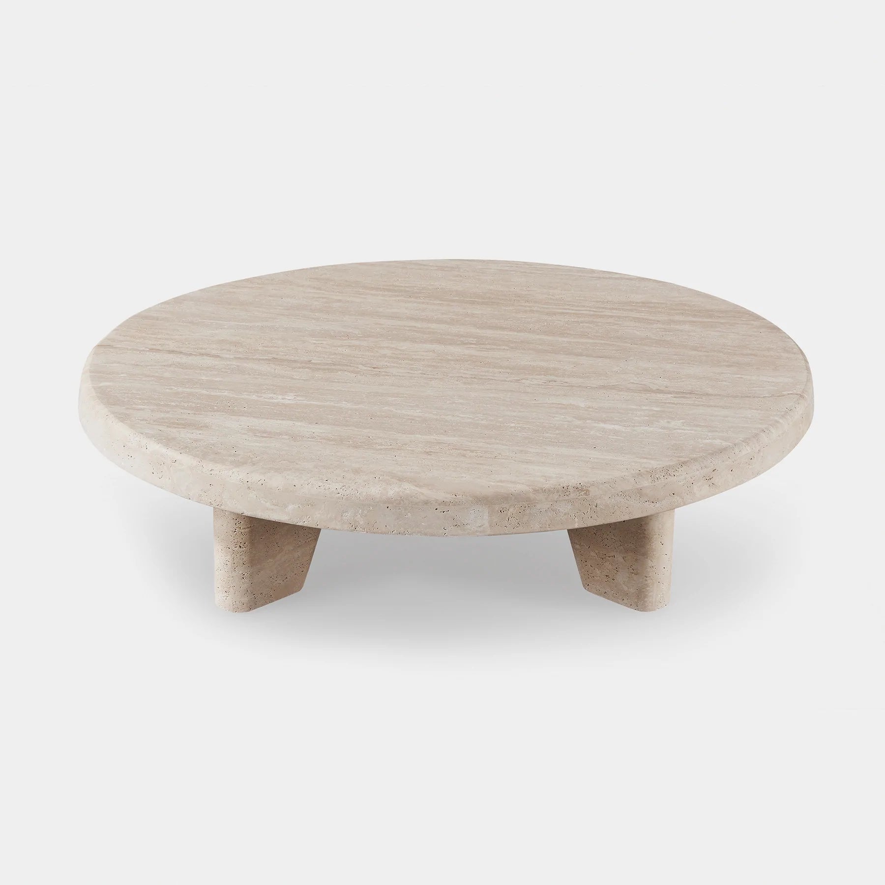 Our indoor/outdoor Lucca collection features dynamic angles, organic curves and a unique tripod construction. The Lucca Round Coffee Table 47" is a conversation piece — handcrafted from a choice of Italian Arabescato marble or European natural travertine, and supported by an aluminum sub–structure to reduce weight. Stone sealant preserves its unique character and makes it a versatile piece for use indoors and out — but wherever you place it, it will be a statement. Available in two sizes of varying height and diameters, each can stand alone or be grouped together for the perfect layering.
