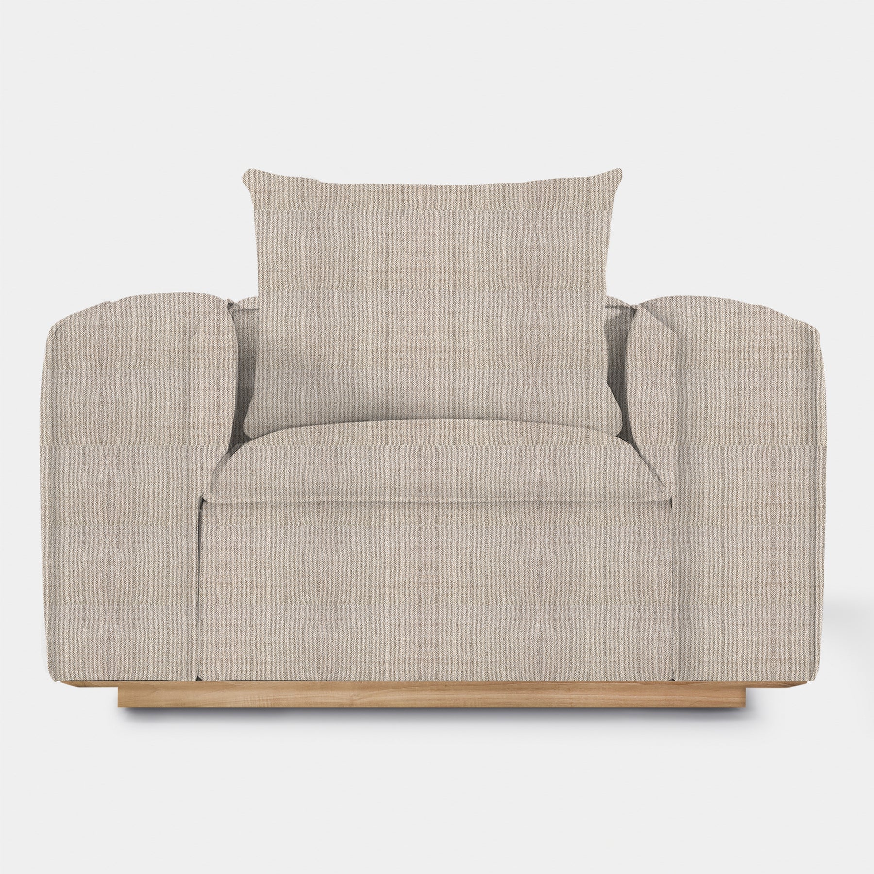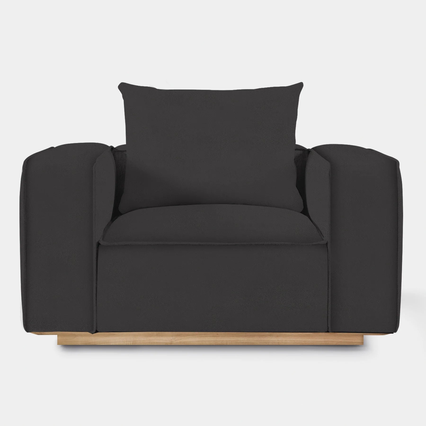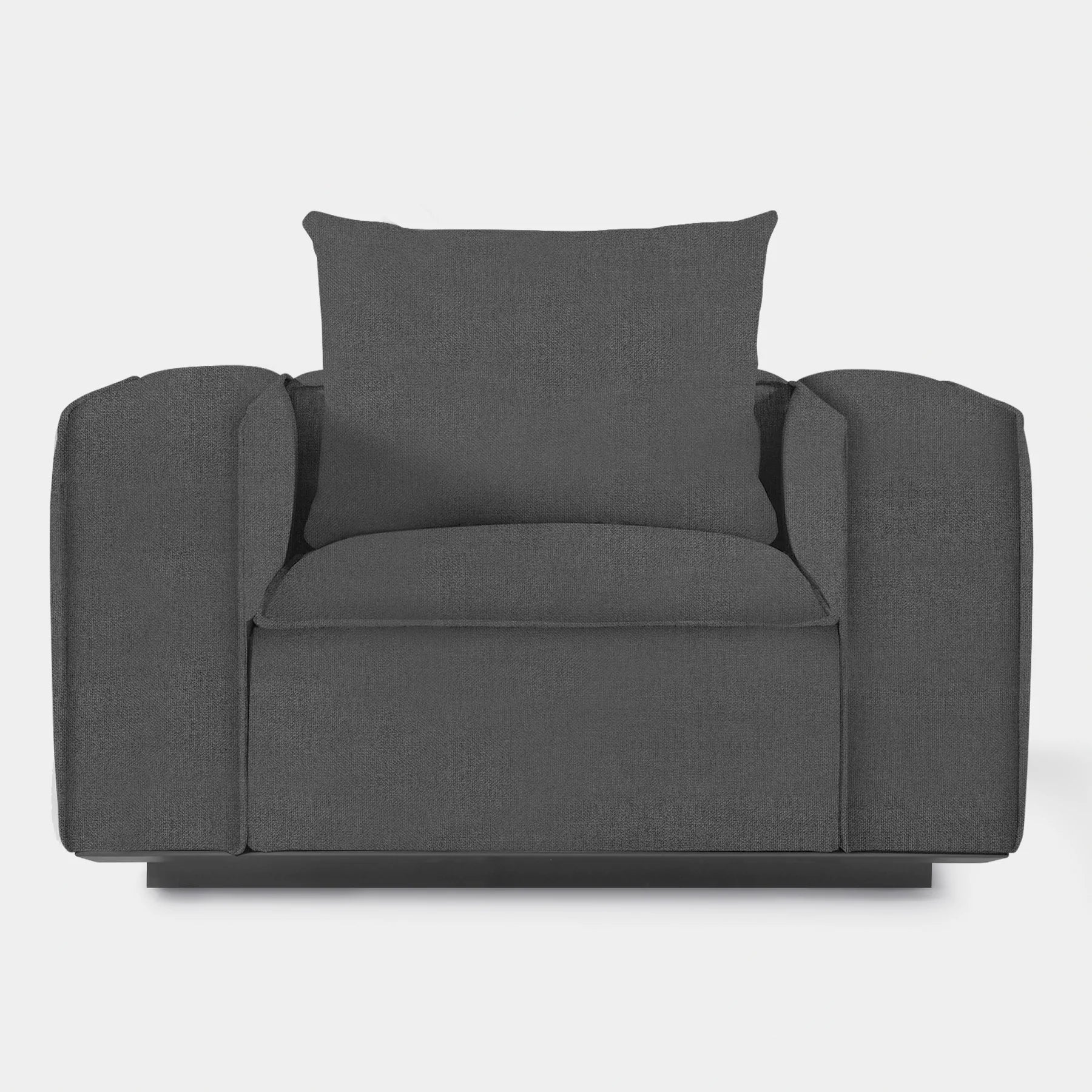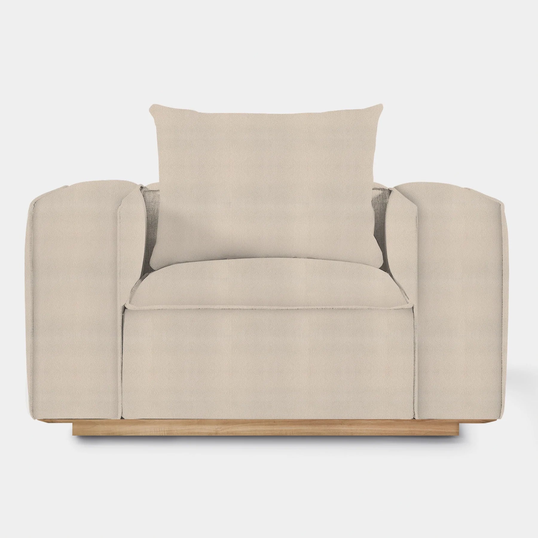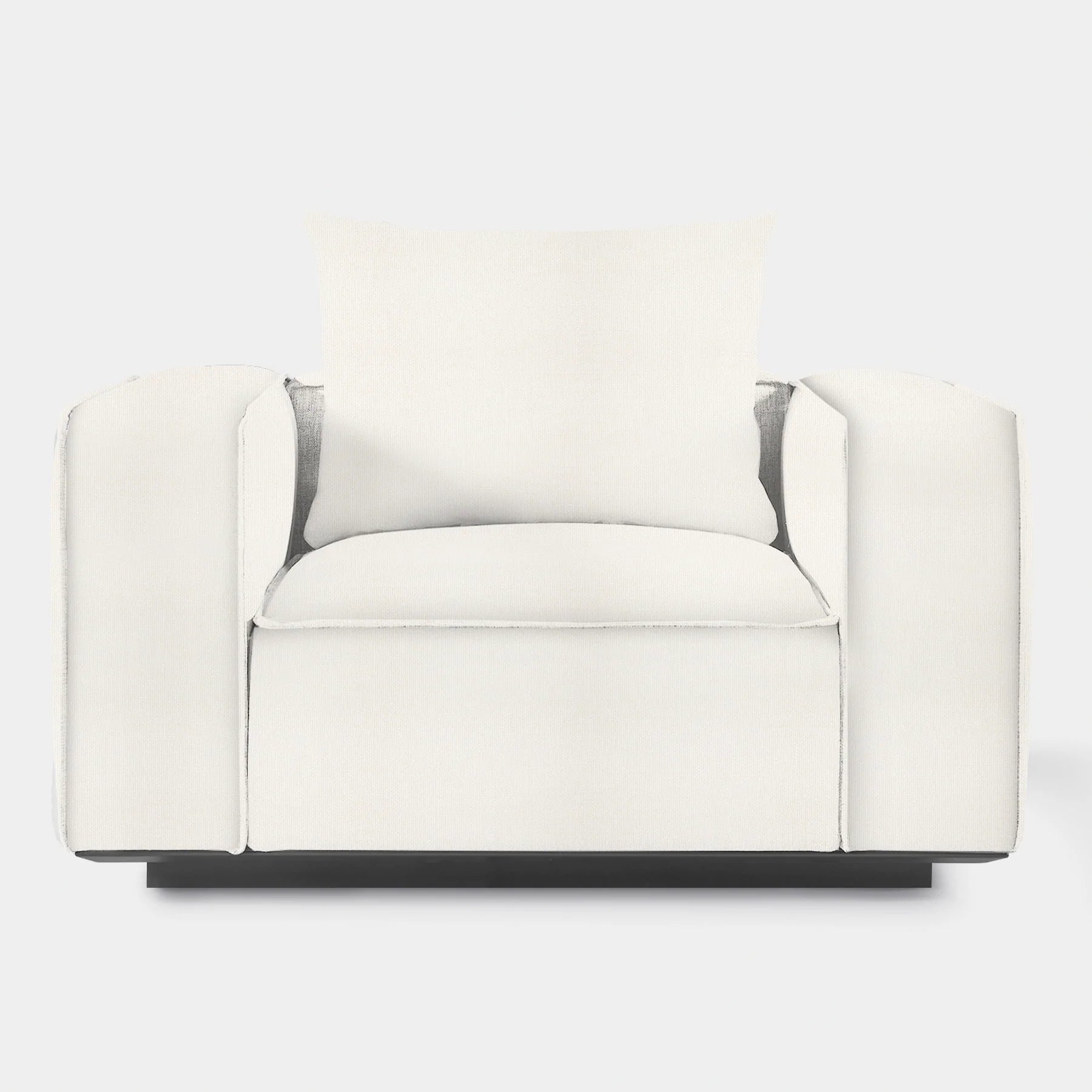 Building on our years of experience in outdoor design, the popular fully upholstered Santorini collection offers versatility in modular seating. Our smaller sofa, the Santorini collection is pure comfort — sink into an extra generous tight seat cushion with an all-weather suspension system and accent pillows, all floating on a plinth base in a choice of aluminum or teak. This easygoing modular component can be configured to fit an existing smaller space — and is always adaptable to the next space.