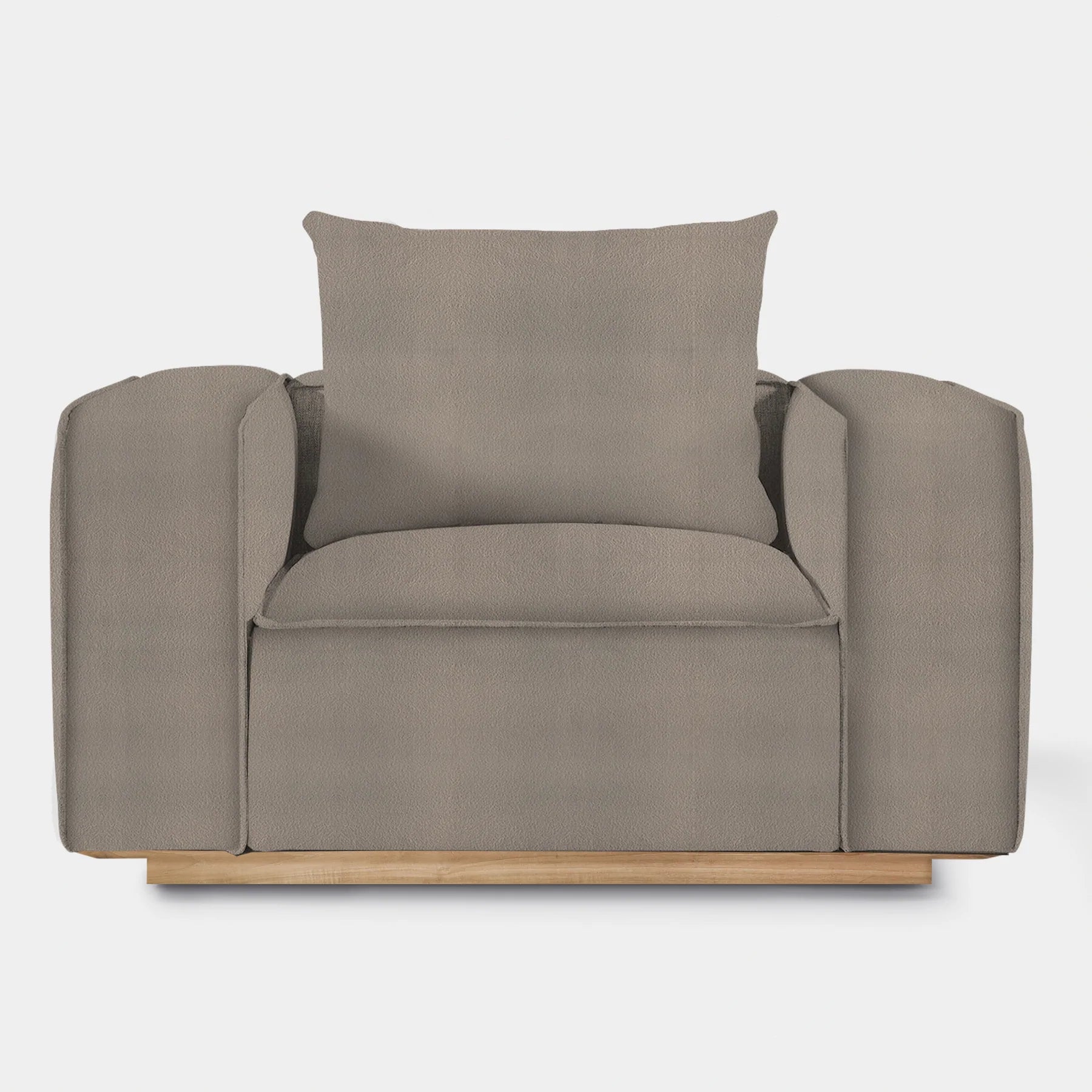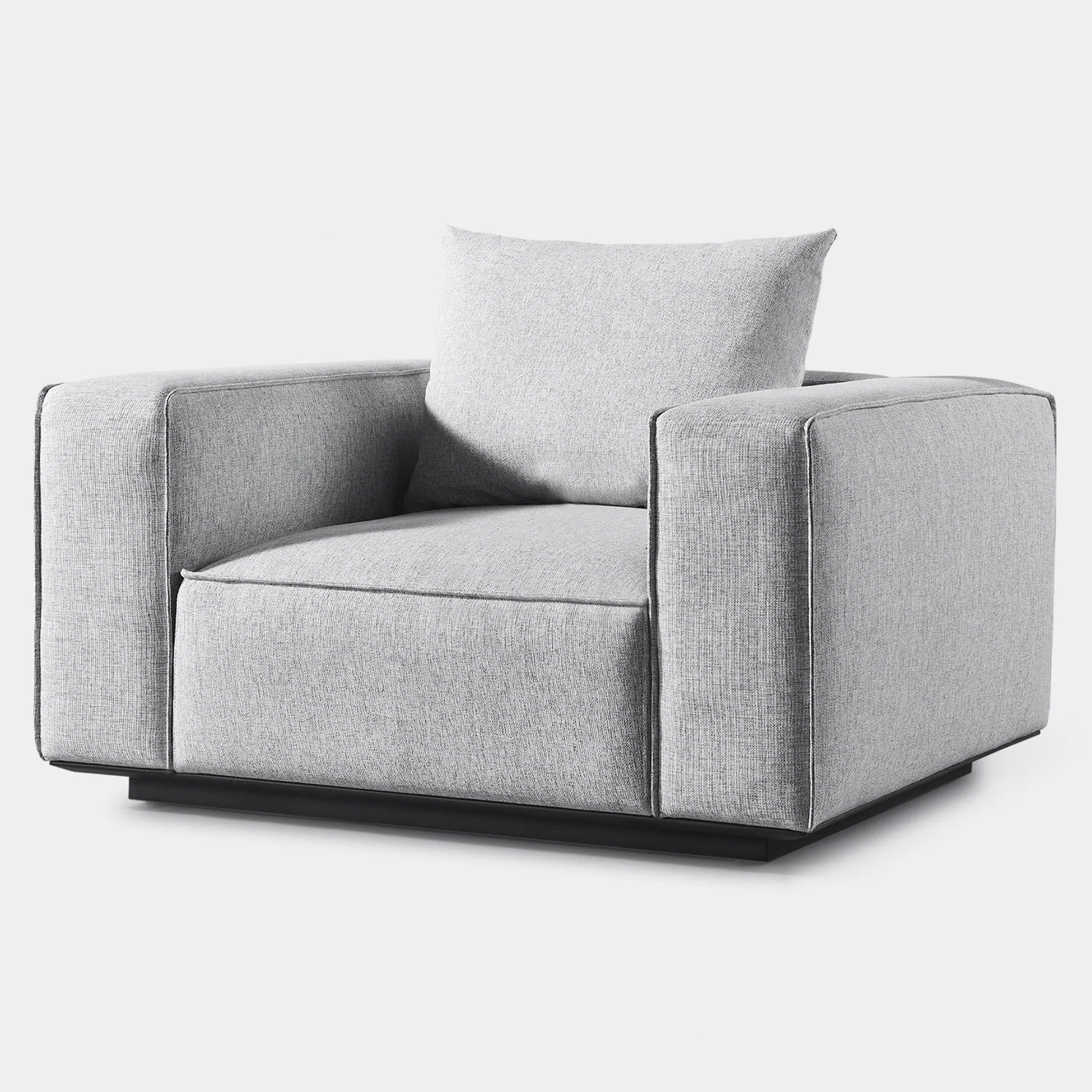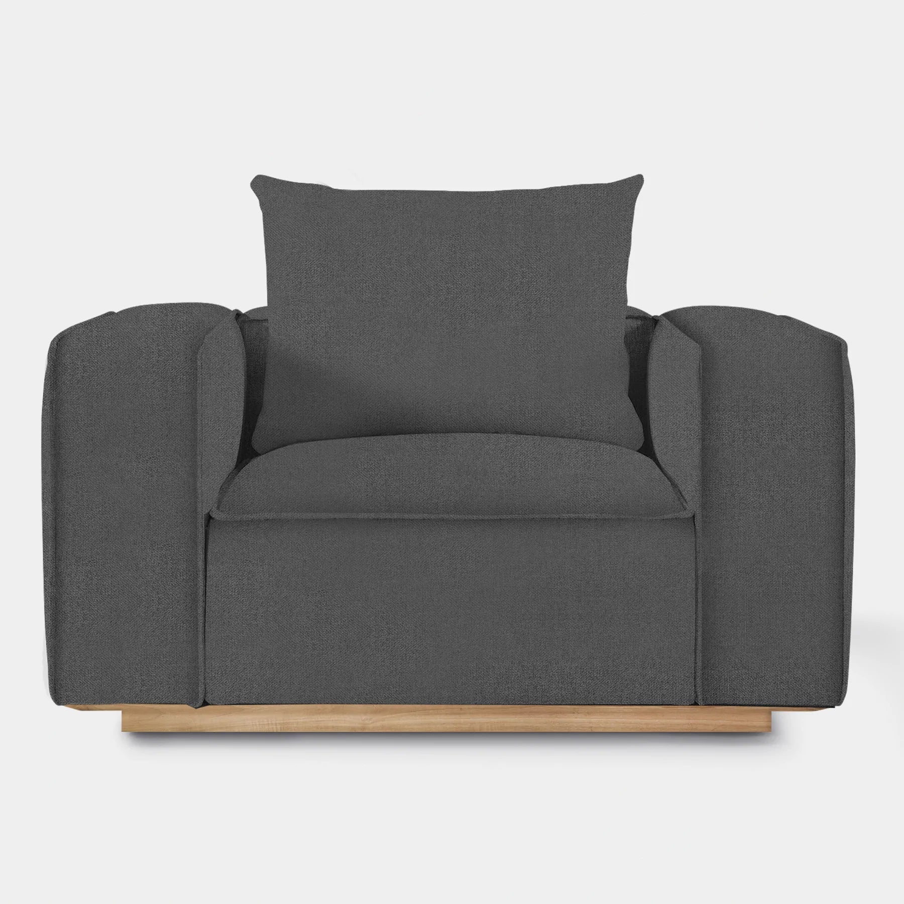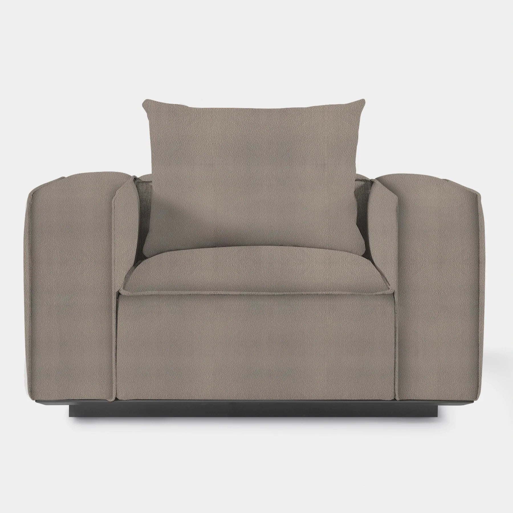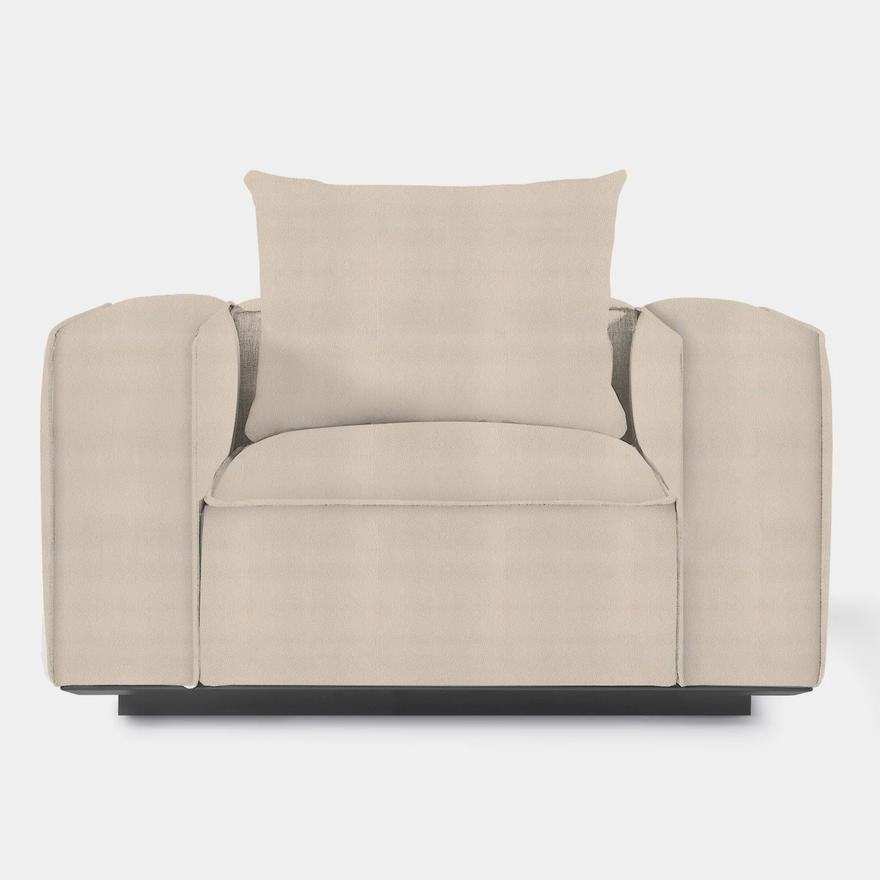 Building on our years of experience in outdoor design, the popular fully upholstered Santorini collection offers versatility in modular seating. Our smaller sofa, the Santorini collection is pure comfort — sink into an extra generous tight seat cushion with an all-weather suspension system and accent pillows, all floating on a plinth base in a choice of aluminum or teak. This easygoing modular component can be configured to fit an existing smaller space — and is always adaptable to the next space.