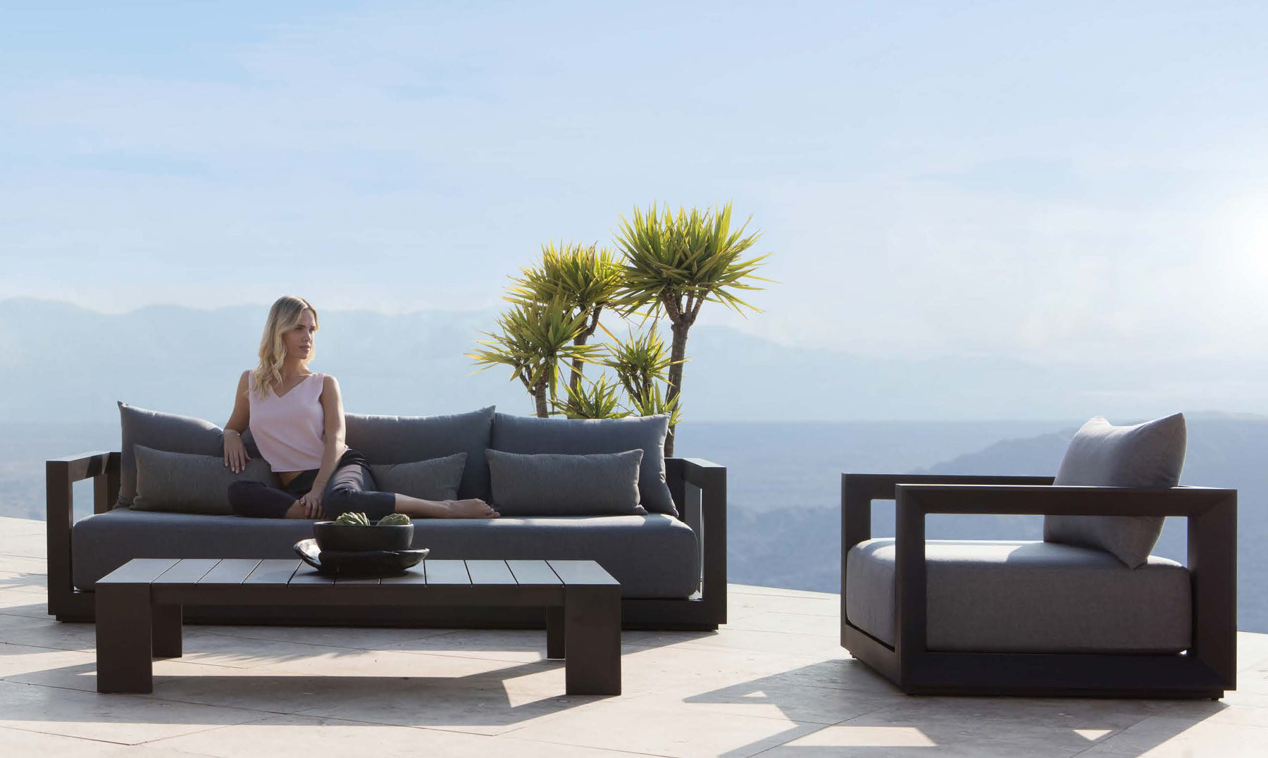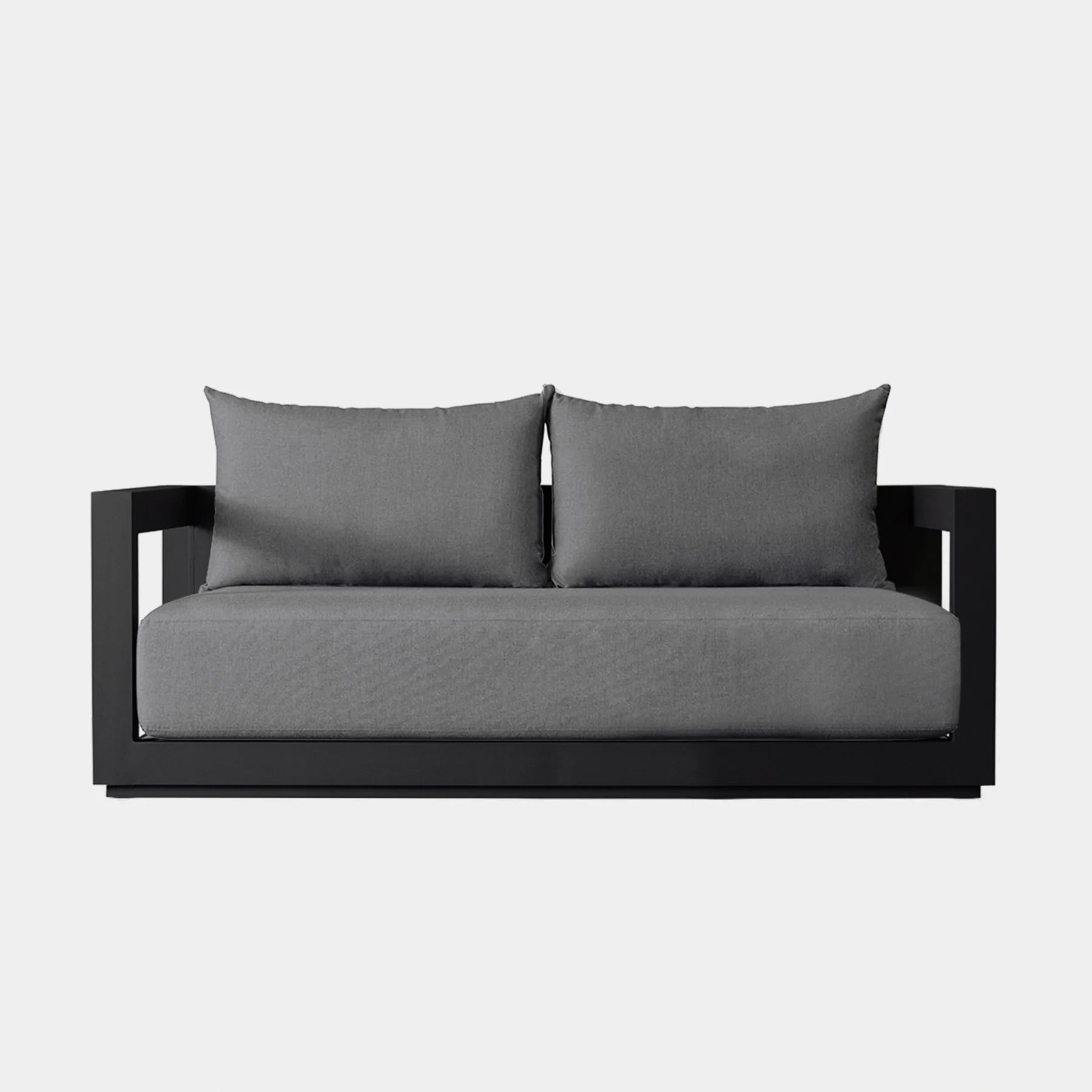 The Our Vaucluse collection explores simple geometries with angular details in a contemporary study of triangles. Surprising and subtle, the Vaucluse 2 Seat Sofa is the perfect escape — lounge on a deep all–weather bench cushion supported by a Batyline sling suspension on a powder-coated extruded aluminum frame. Outwardly square geometries angle inward in triangular form, creating a dynamic play on shapes that defines the design. This streamlined piece is equally versatile, bringing a sense of balance to any smaller space.