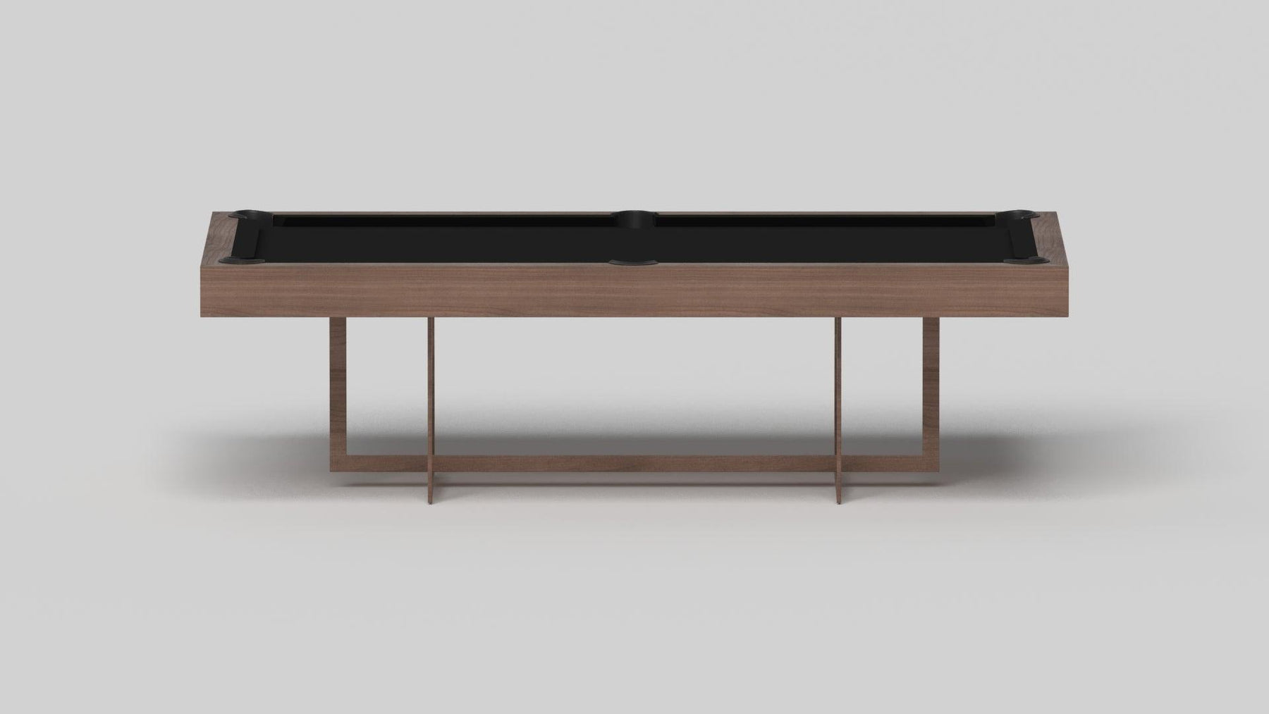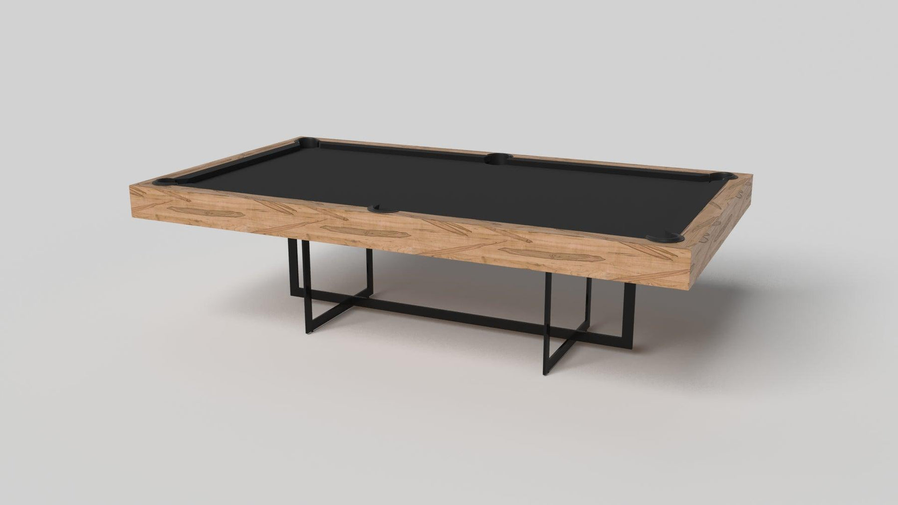 Introducing the BESO Billiard Table by Elevate Customs - a striking example of contemporary design in luxury game tables. This table, with its open metal foundation, is a unique expression of modern forms and negative space. Handcrafted with meticulous care, the BESO table showcases a rectangle-in-rectangle base that reflects the precise geometry of a regulation game top. The table combines simple, sleek aesthetics with exceptional playability, making it an unmatched style statement.