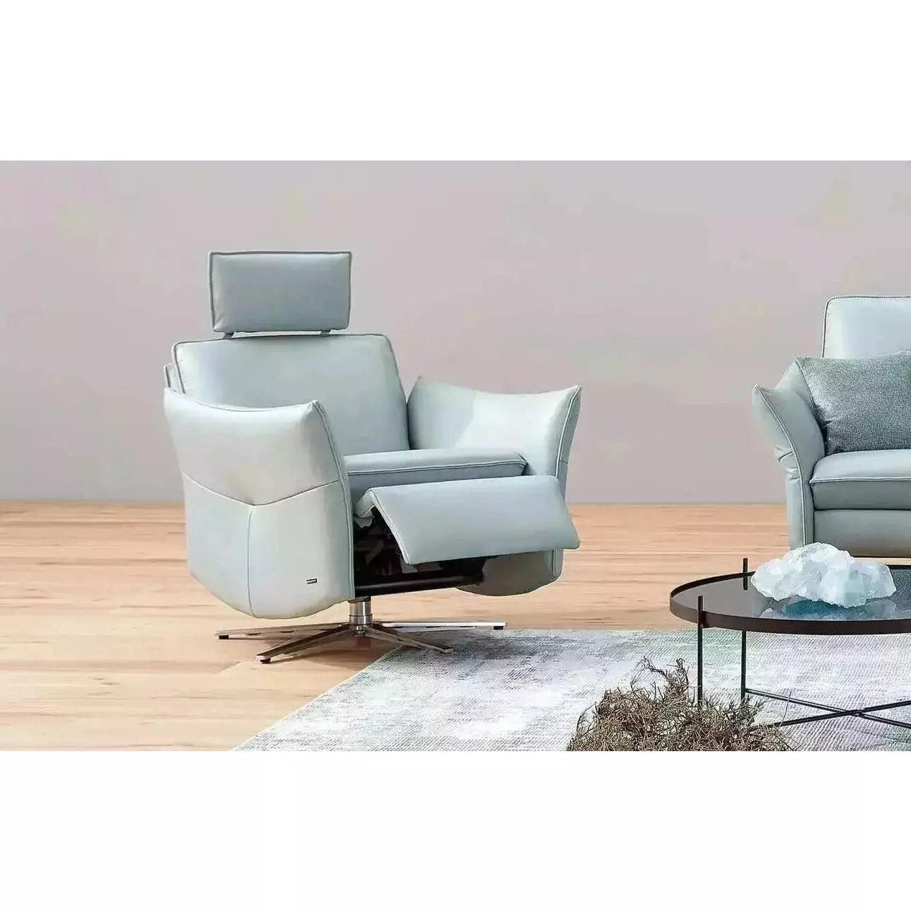 The Himolla ROY 8566 compact, low-profile swivel chair easily converts into a full-grown recliner with an adjustable headrest. Simply fold up the backrest and push back to activate the recliner mechanism. Its neutral and clean design matches practically all room settings and will convert your home into an oasis of comfort.