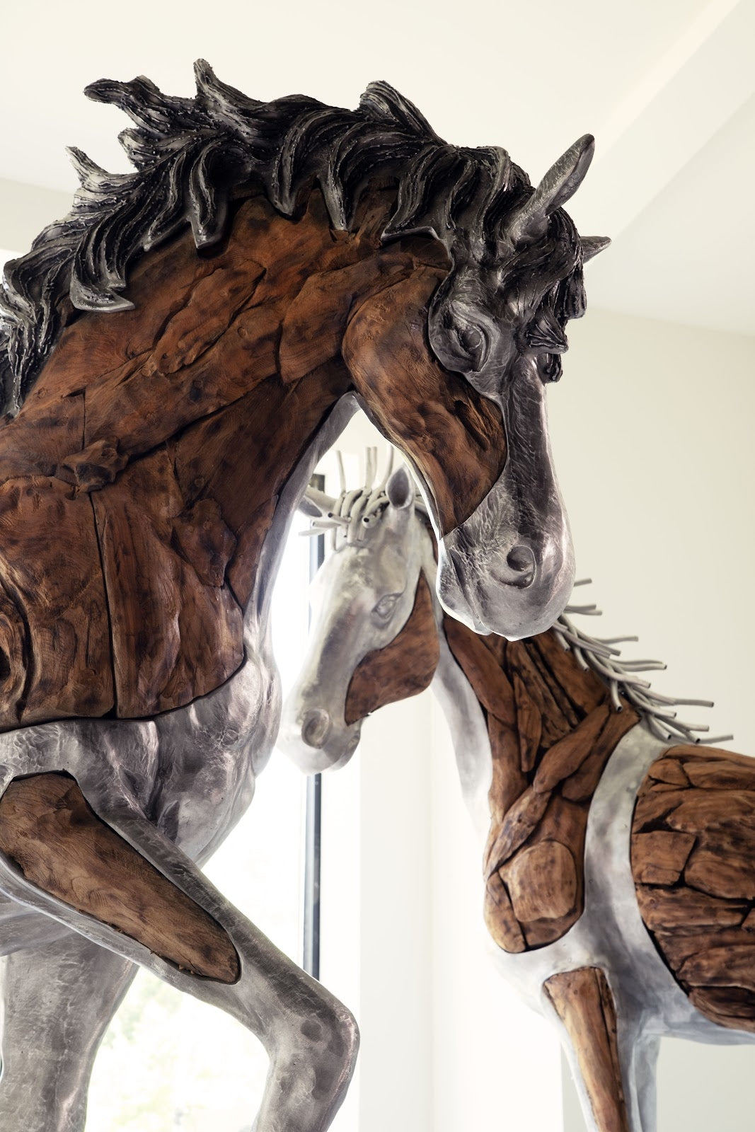 The Woodland Mustang Walking Horse Sculpture, crafted by award-winning Indonesian artist Timbul Raharjo, is a stunning representation of both artistry and nature. Made from a blend of teak and metal, this sculpture brings to life the powerful presence of a walking mustang. Each piece is hand-sculpted and meticulously polished, offering a striking, lifelike appearance. With its natural finish and sturdy base, this large-scale masterpiece is perfect for outdoor settings or as a bold statement piece indoors. Raharjo’s mastery in working with wood and aluminum adds depth and texture to the sculpture, making it an exemplary representation of Phillips Collection's modern organic design philosophy.