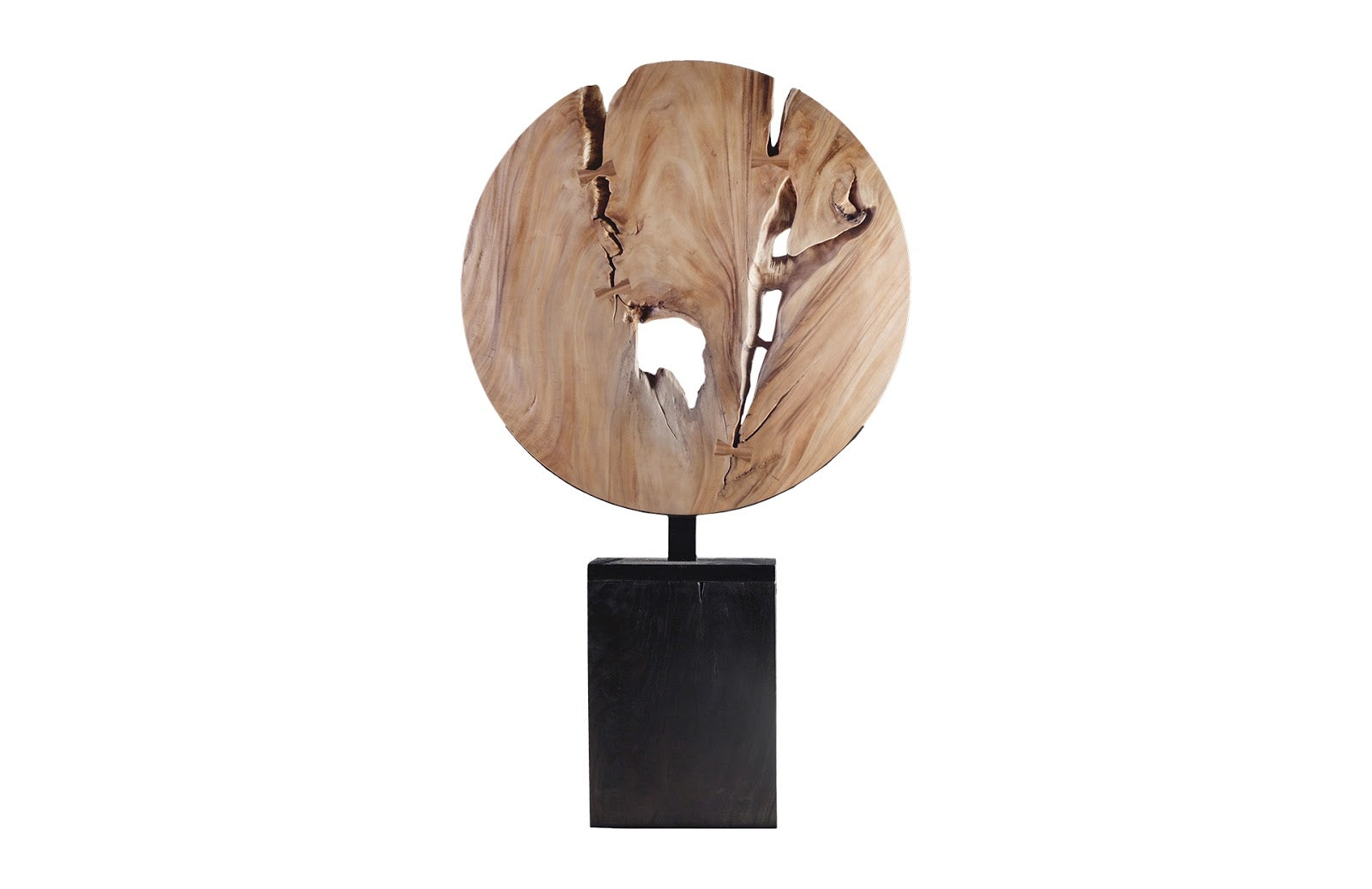 The Wooden Moon Sculpture by Phillips Collection is a breathtaking masterpiece that captures the organic beauty of nature in its most refined form. Handcrafted from natural solid Chamcha wood, this sculpture highlights the woodgrain and natural fissures, giving it a uniquely dynamic and earthy character. The circular design, sanded and polished by artisans, makes the woodgrain the focal point, delivering a piece that is both modern and organic. Perfect for adding an artistic statement to any space, this sculpture embodies the Phillips Collection's ethos of modern organic design.