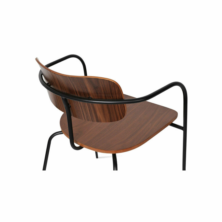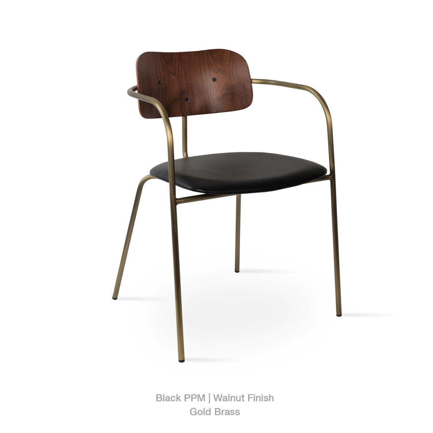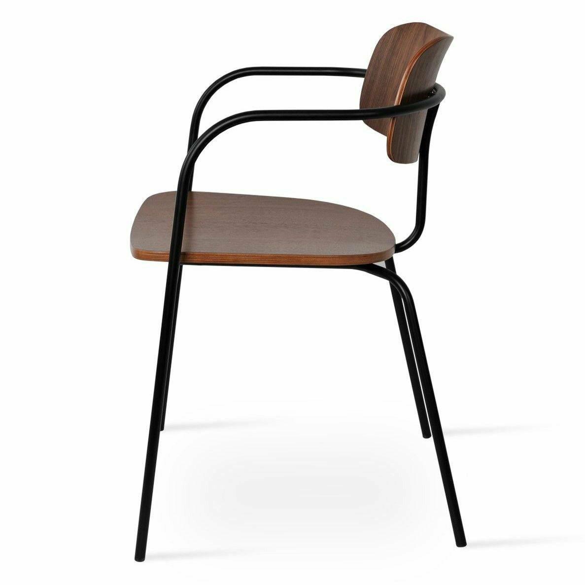 Academy is an industrial-style dining chair with a plywood seat and back finished in walnut veneer. The metal legs are finished in matt black and brass gold. Academy is designed by the Industrial Modern team and it's suitable for both residential and commercial use.